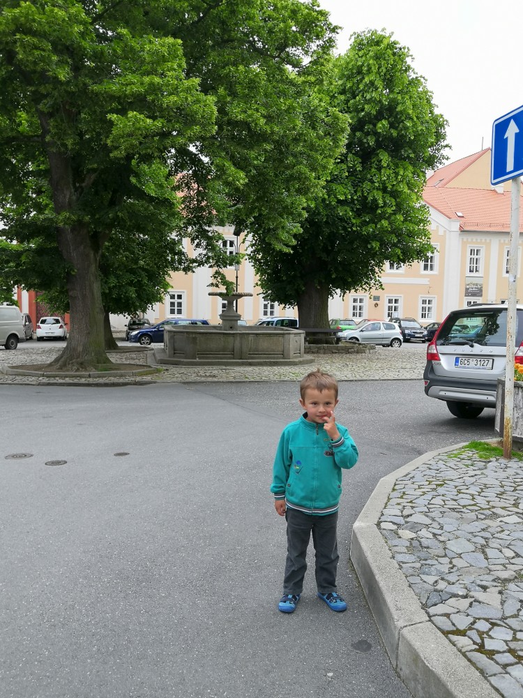 Setkáváme se v Táboře s Magdou. Situace už jí dovolila vycestovat z Rakouska. Setkáváme se na náměstí. Děti mají bojovku. Mají hledat kašny na starém městě. My stihneme hezky popovídat.