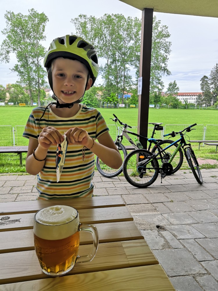 Dnes má Martínek gymnastiku a máme domluveno, že gymnastiku může zkusit i Jiřík. Jedeme tam na kole. Jedeme přes Staré Větrovy na Soukeník. Jiřík s Martínkem jdou cvičit a já jedu s Víťou na vyjížďku. Jedeme po jednom břehu Lužnice do Plané a pak po druhém zpět. Zbylo nám trochu času do konce gymnastiky, dávám si pivko a Víťa nanuka. Vyzvedáváme kluky. Ti mají hlad, takže jdeme do hospůdky za řeku ještě jednou na párek v rohlíku. Pak jedeme domů.
