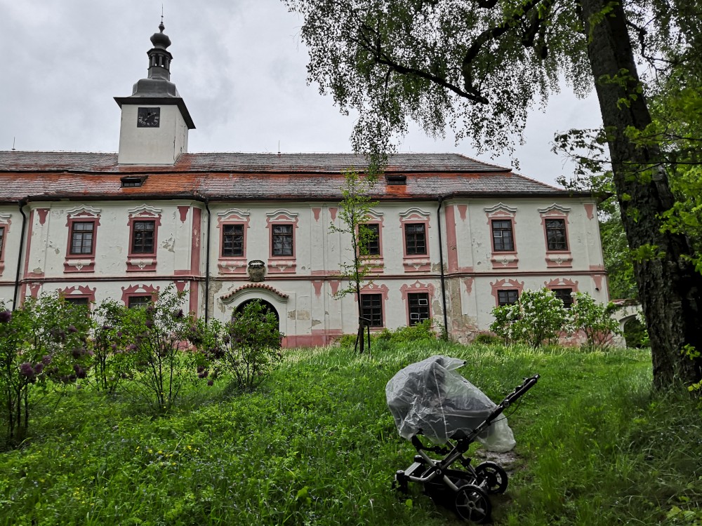 Dnes Pavel s Martinem vyprávějí o cestě na motorkách po Jihoafrické republice, Botswaně a Namibii. Betušku to asi moc nebaví, pláče, musím s ní ven :-). Chodíme za deště kolem místního zámku.