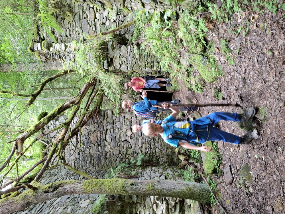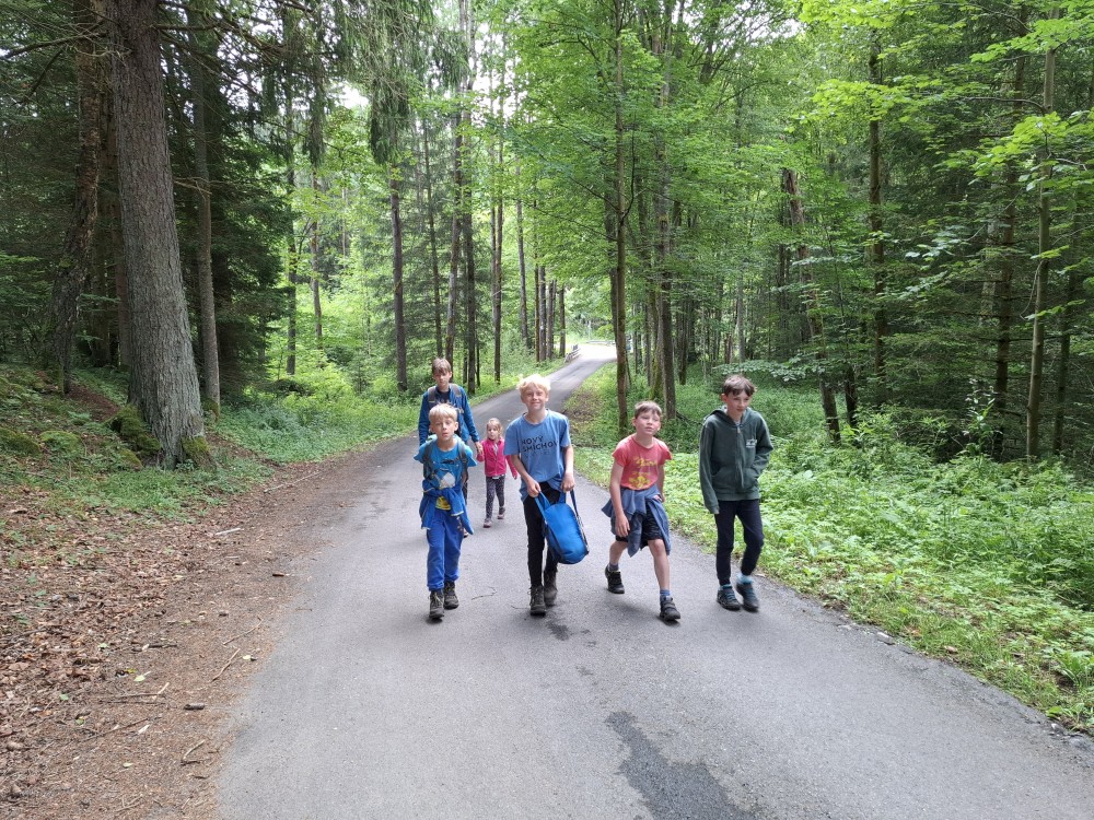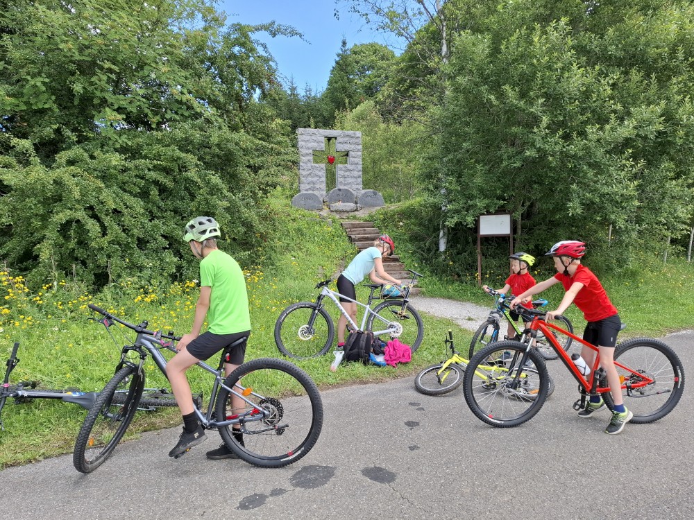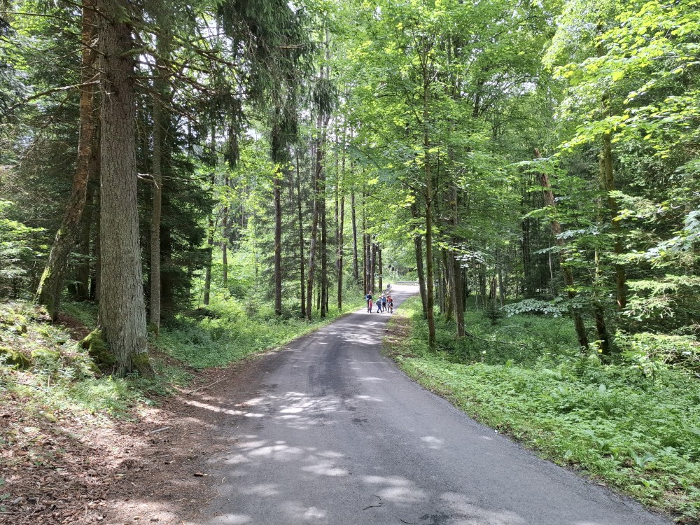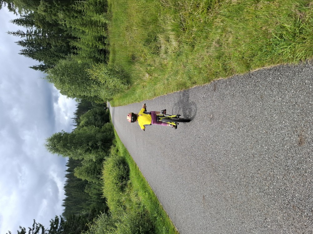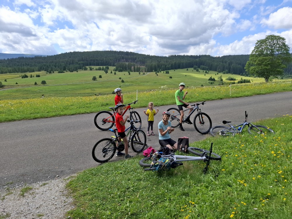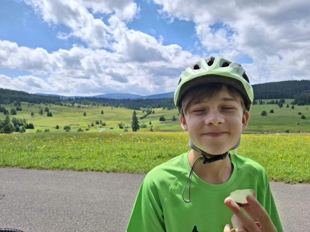 Pak se přes Slučí tah dostáváme k závěrečnému kopci k autu. Jsme rádi, že jsme tu. Bětuška má rekordní vzálenost ujetou na kole. Nakládáme kola a vyrážíme na velmi pozdní oběd. Jedeme do naší oblíbené hospůdky U Krámu na Horské Kvildě.