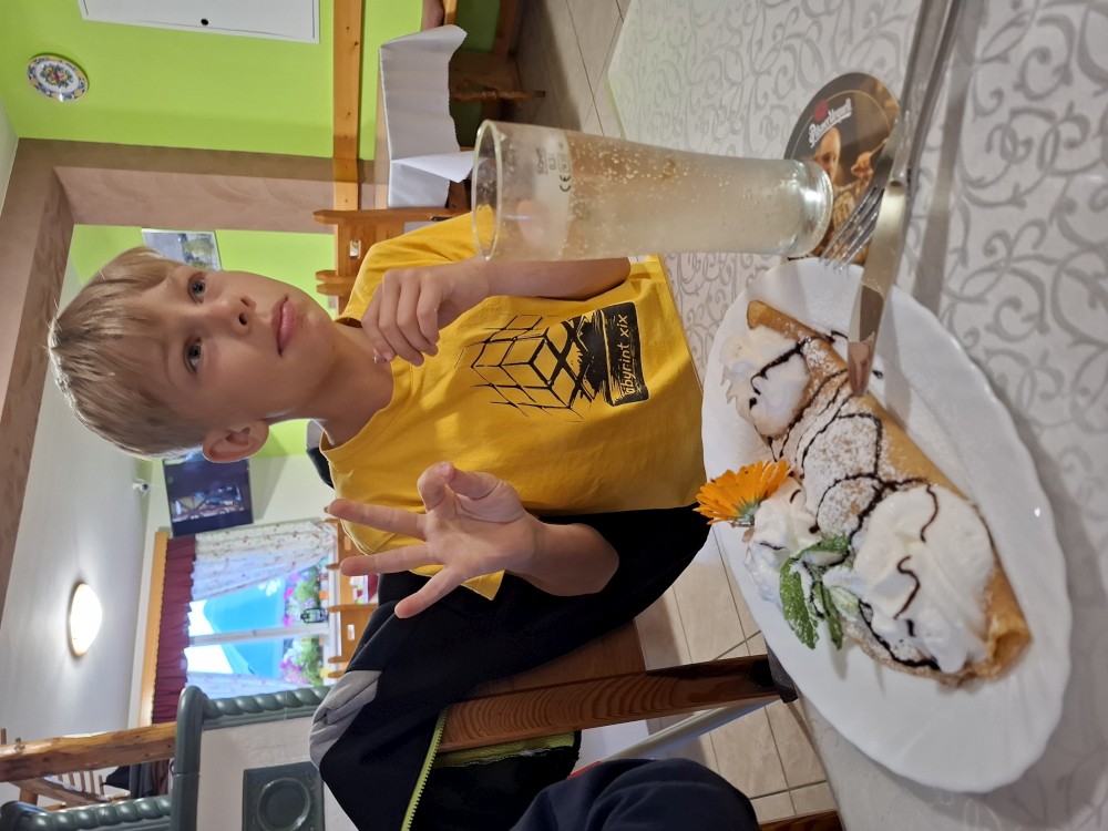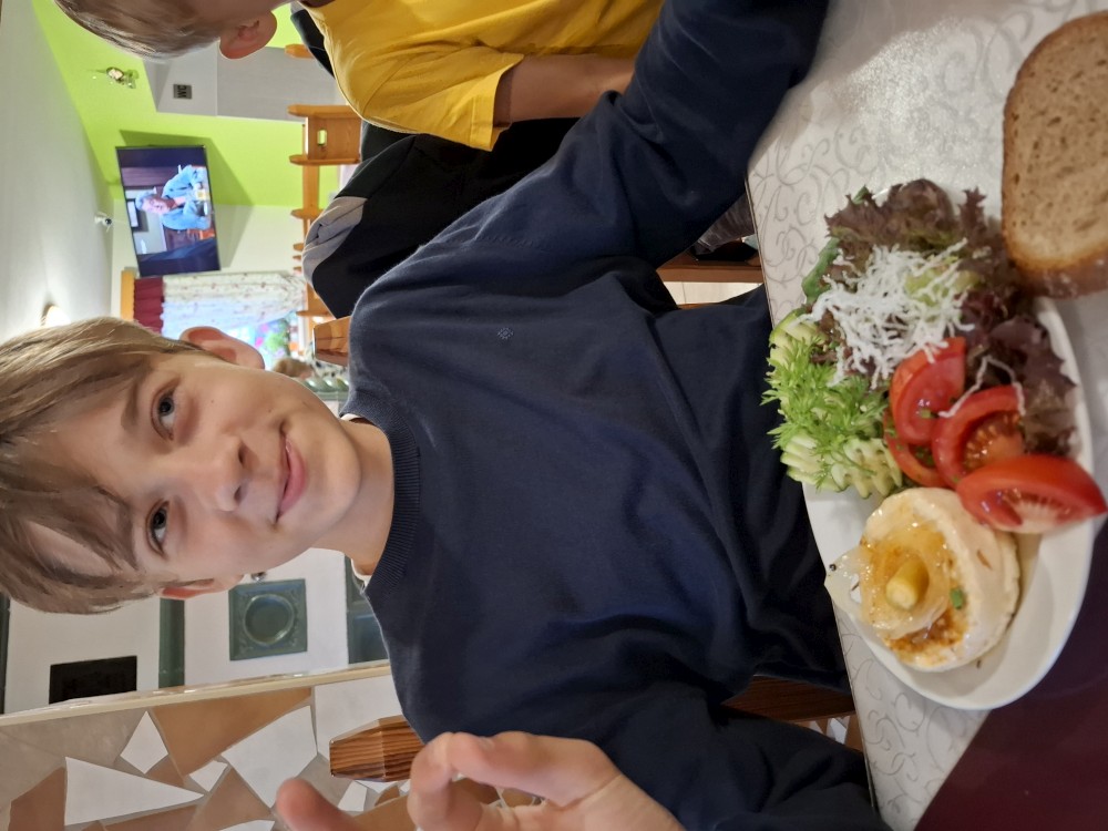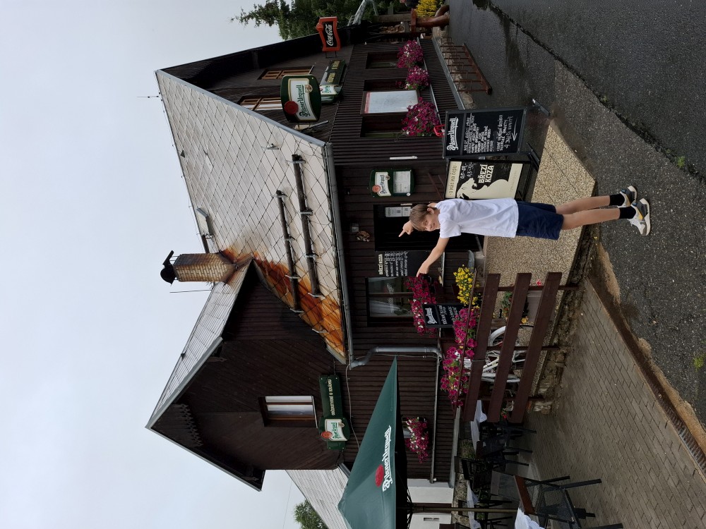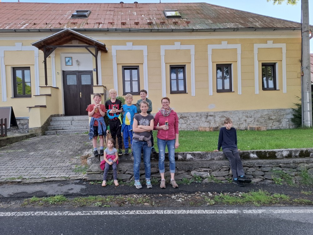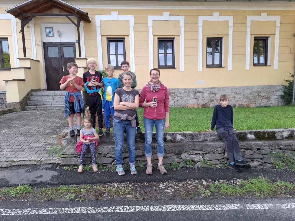 Jedeme do Kašperských hor, kde si dáváme společně oběd v restauraci Na solné stezce. Také nekupujeme nějaké drobnosti v obchodě. Loučíme se s Kultovkou, která se vrací s dětma do Tábora a jedeme do Jelenova.