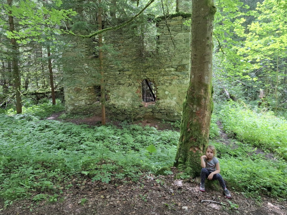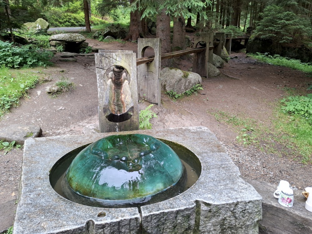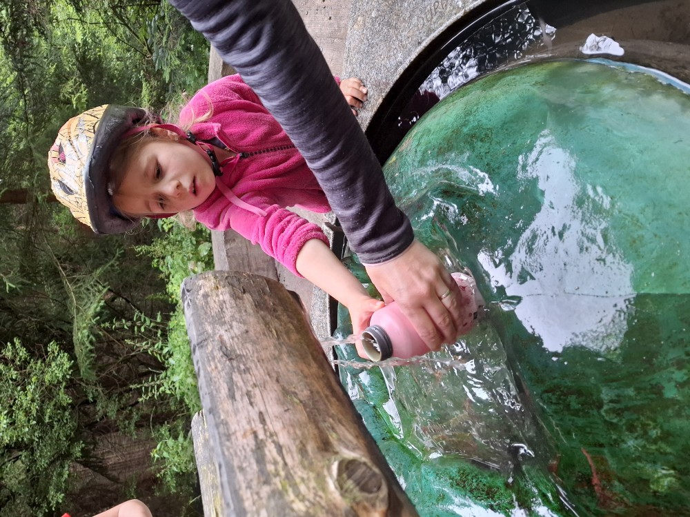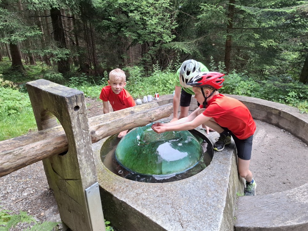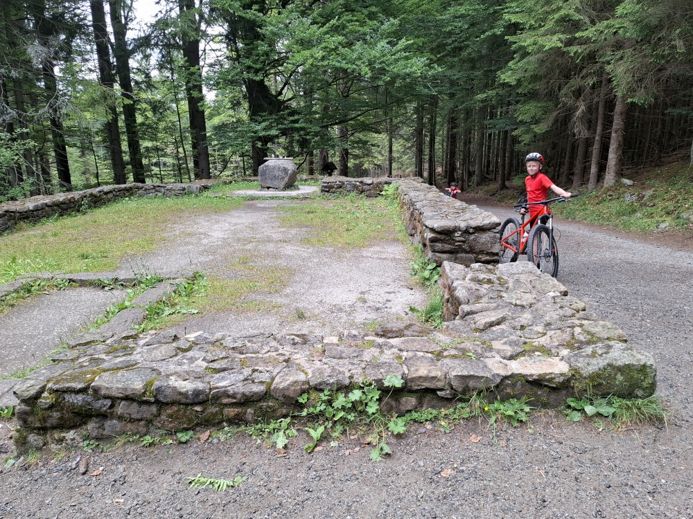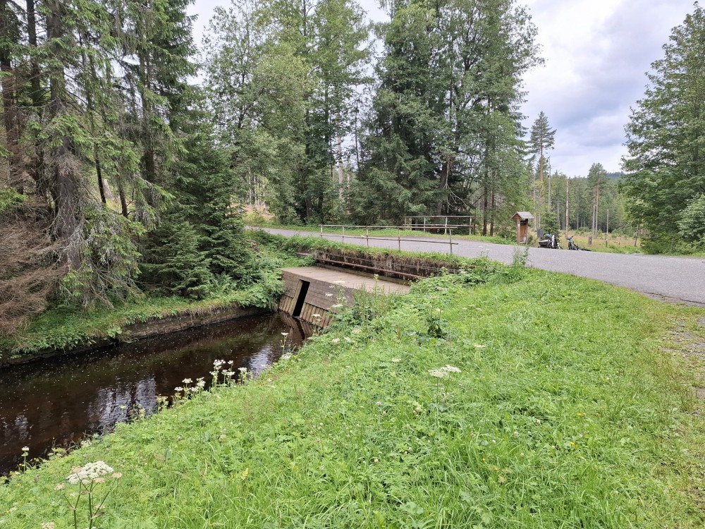 Ochutnáváme vodu z místního pramene. Pak pokračujeme přes vodní elekrárnu a po pěkné cestě po žluté turistické trase do Srní k autu. Kluci čekají u kol, já jedu s Janou a Bětuškou pro druhé auto na Modravu. Asi za 20 minut jsme zpět, nakládáme kola a jedeme zpět na chalupu.