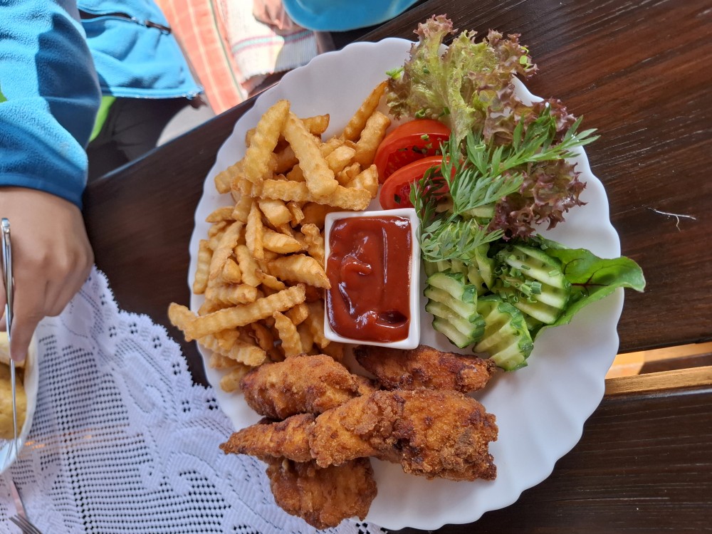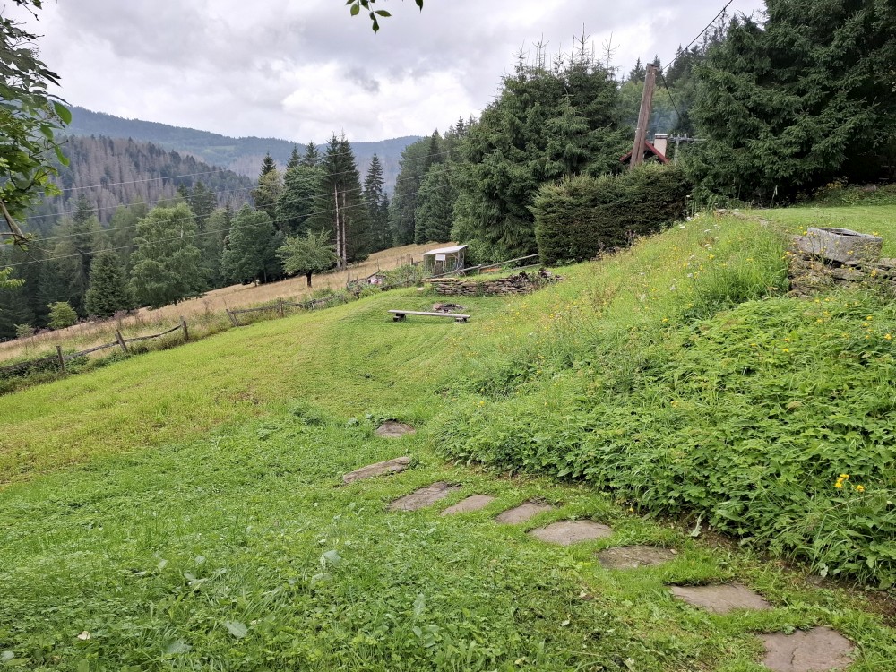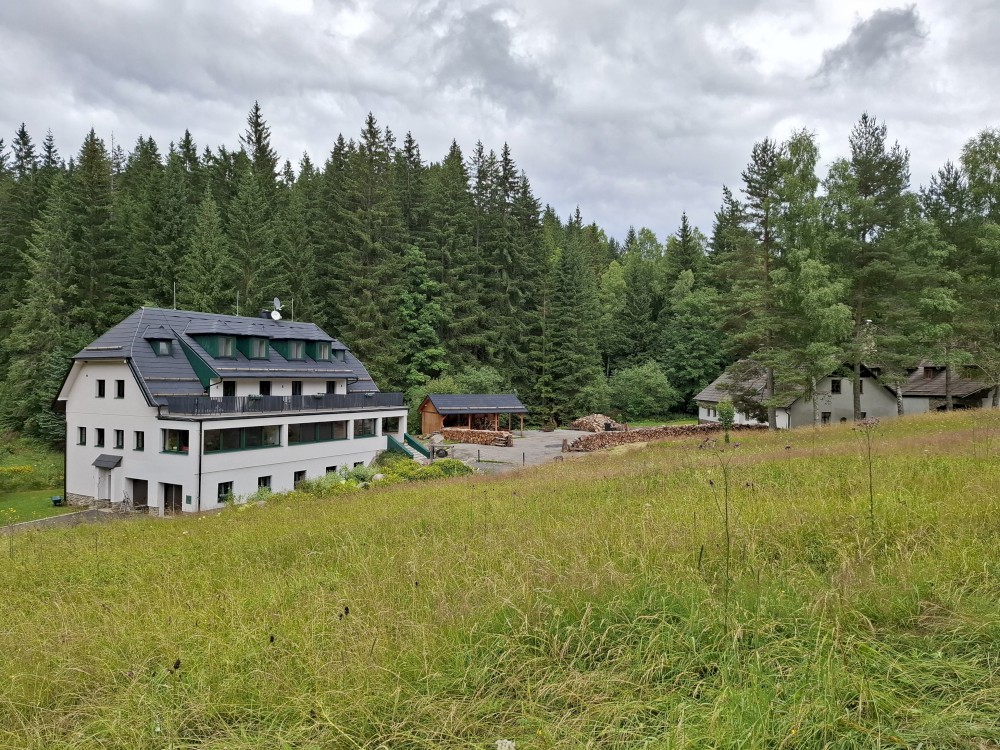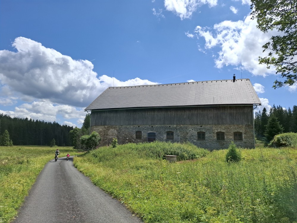 Pak sjíždíme na Nový Burnst a pokračujeme dále na Gerlochovu huť. Odtud jedeme po cyklostezce a kousek i po silnici do Nové Hůrky. Tam si kupujeme v penzionu Tatranky na posilněnou.