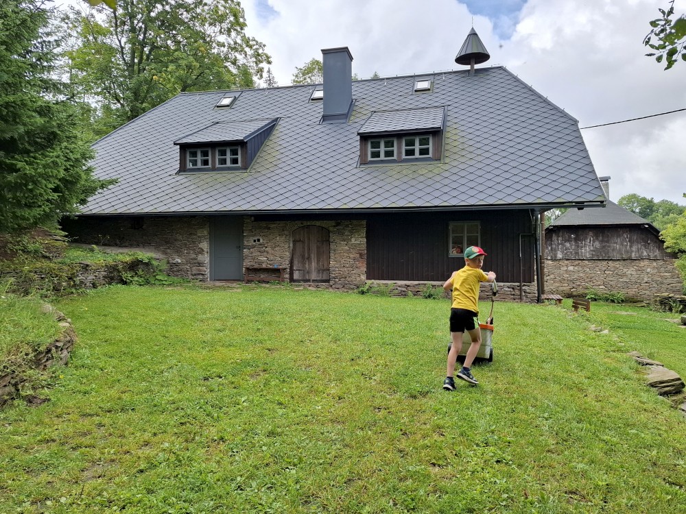 Dnes už jen balíme a uklízíme chalupu. Také sečeme trávník kolem chalupy. Z Jelenova vyrážíme po jedenácté hodině. Jedeme oběma auty, všechny děti jedou se mnou. Jsme doma na pozdní oběd.