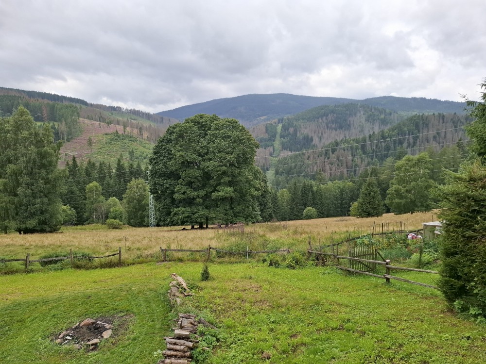 Ráno vstávám a pracuji. Zbytek chalupy vstává kolem desáté. Na výlet vyrážíme kolem jedenácté. Auta necháváme u Losenice, v ostré zatáčce cesty, kde stála dříve obec Buzošná.