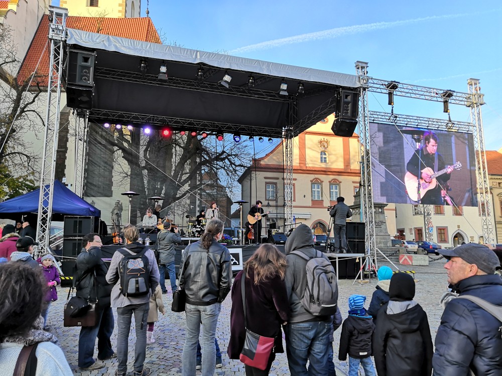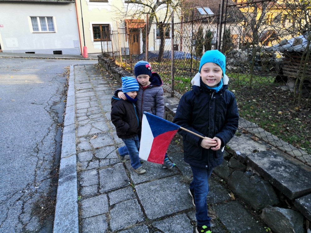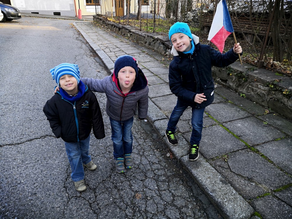 Kluci jdou dopoledne na běh stříbrnou stezkou. Všichni kluci končí cca v polovině startovního pole. Medaili tedy dostává jen Martínek, protože je v kategorii, kde ji dostává každý. Odpoledne jdeme na oslavy kulatého výročí sametové revoluce na Žižkovo náměstí.