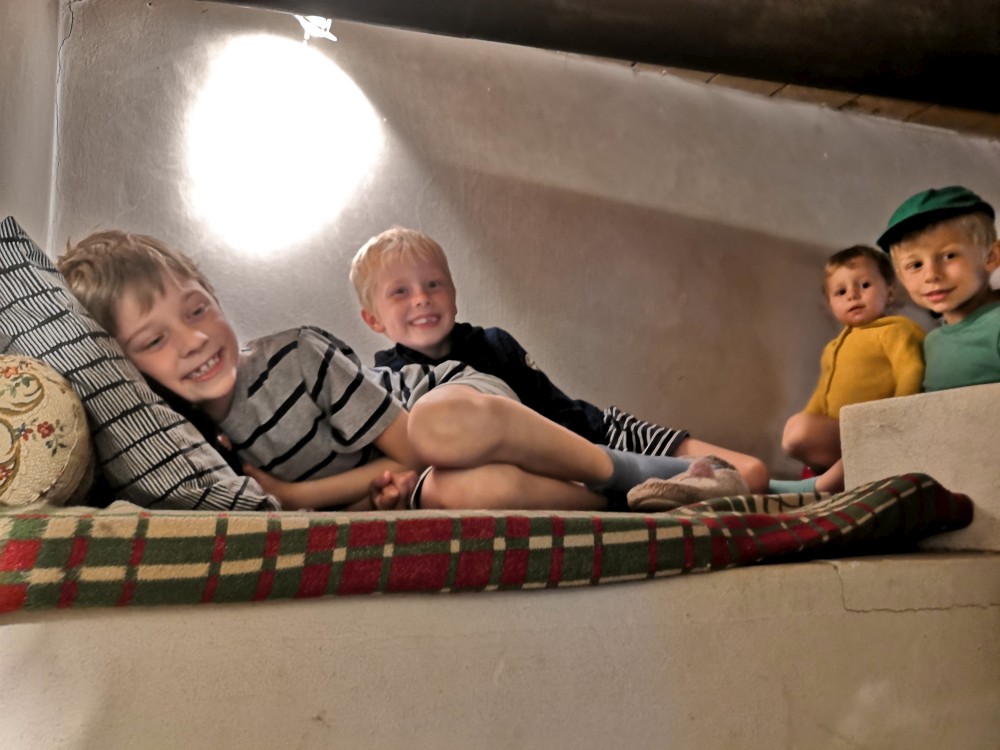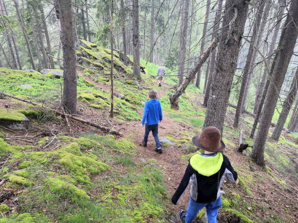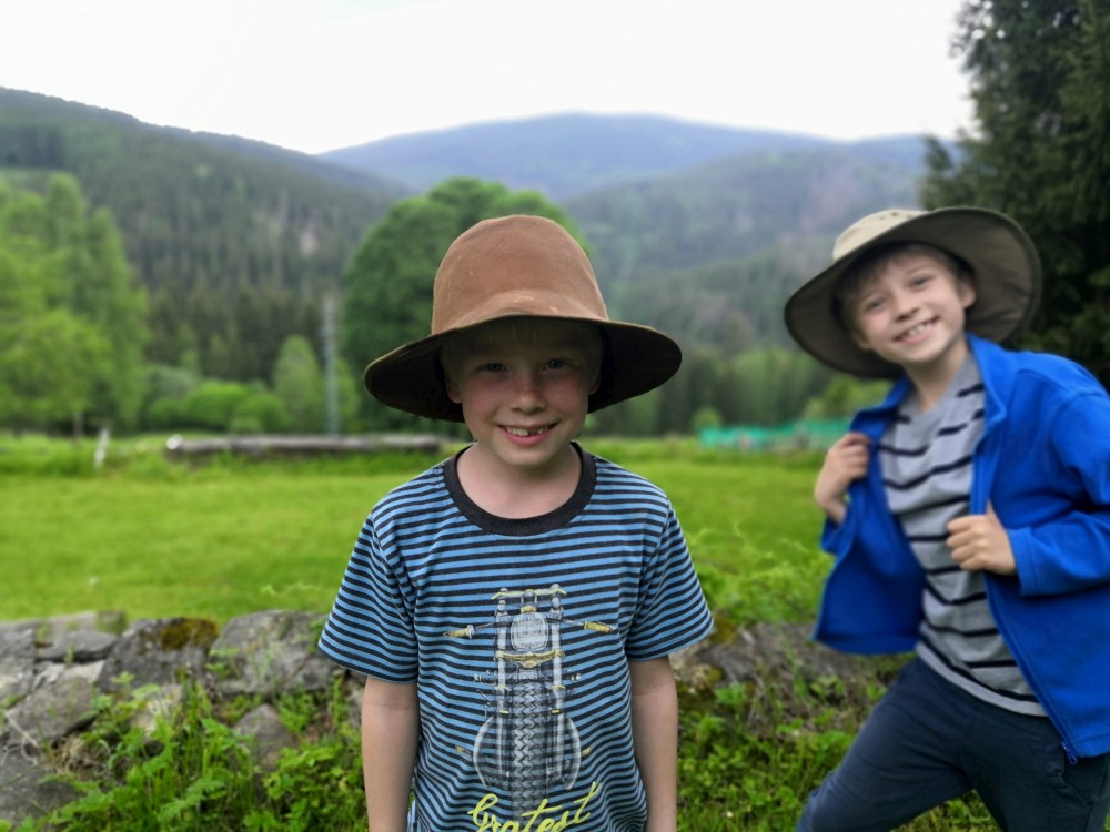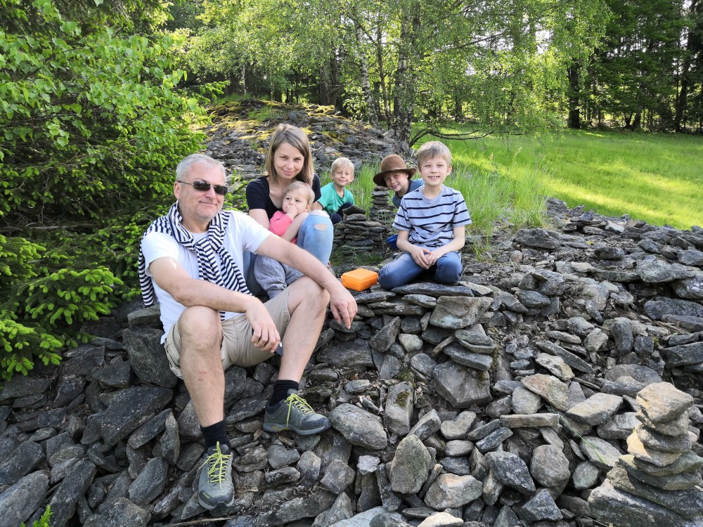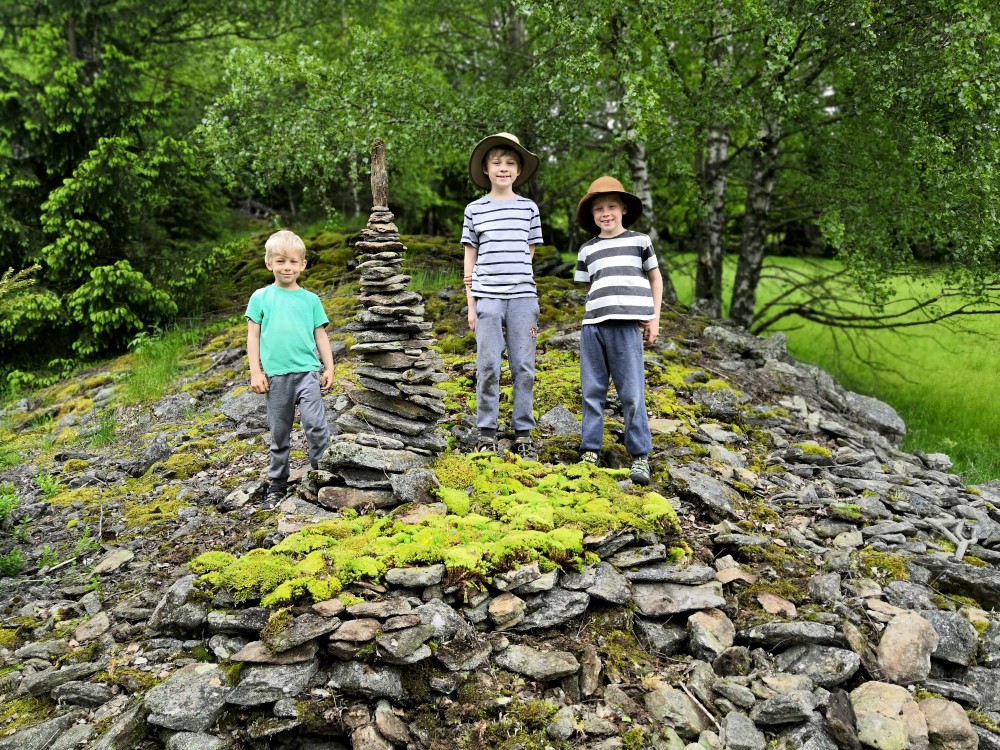 V neděli jdeme na procházku kolem sousedních chalup směr jih. Kluci zase staví mužíky na kamenném poli. Dáváme si na chalupě oběd, balíme se, uklízíme chalupu a jedeme do Tábora.