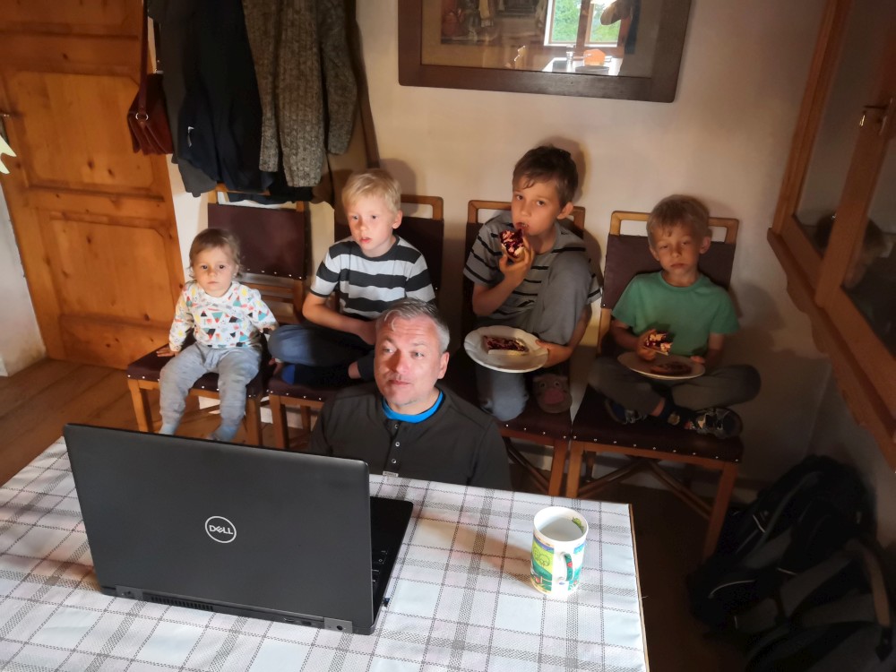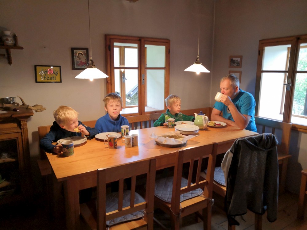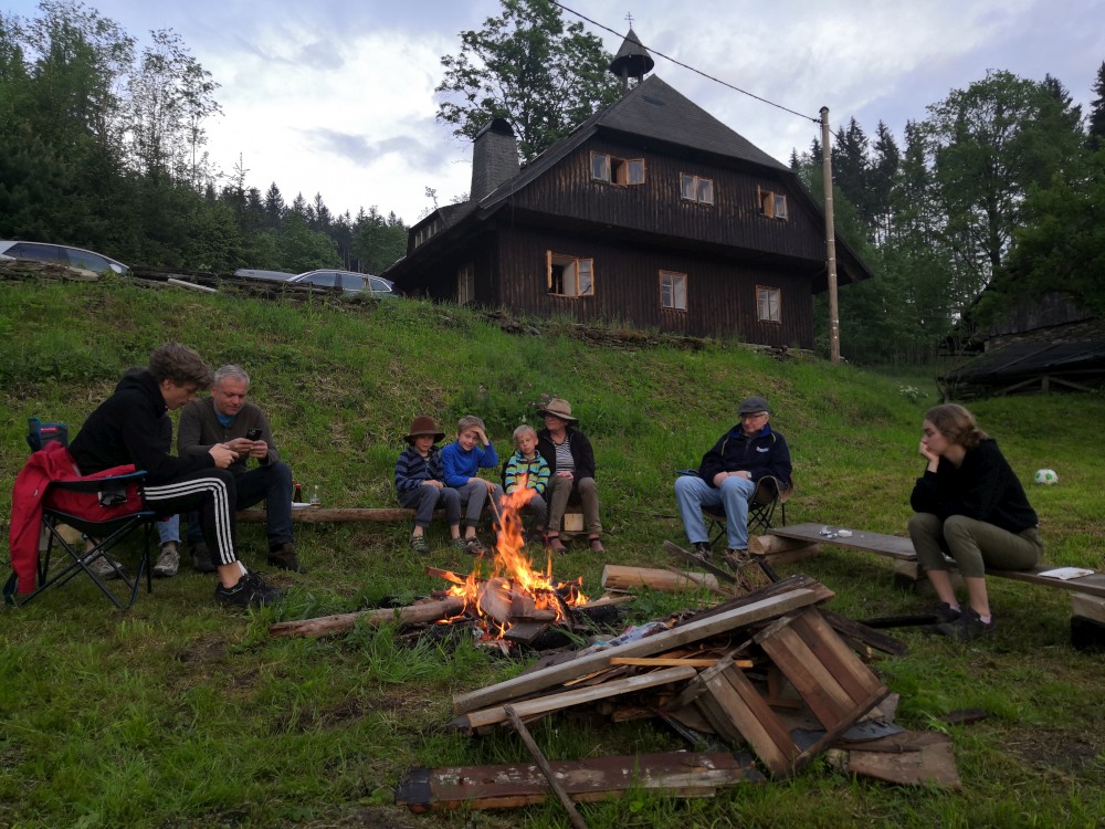 Odpoledne přijíždí Martina, Terezka, Krištůfek a Babička s dědou. Jdeme s nimi na krátkou procházku, připravujeme oheň na večer. Večer opékáme buřty a tak trochu slavíme Terezky úspěšnou maturitu.