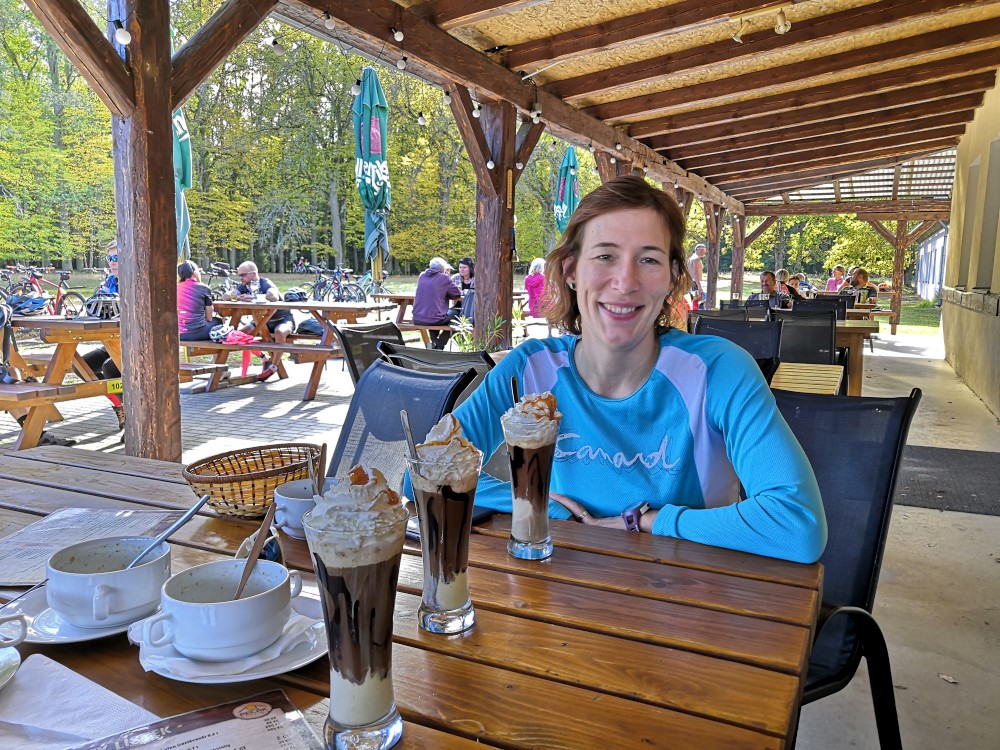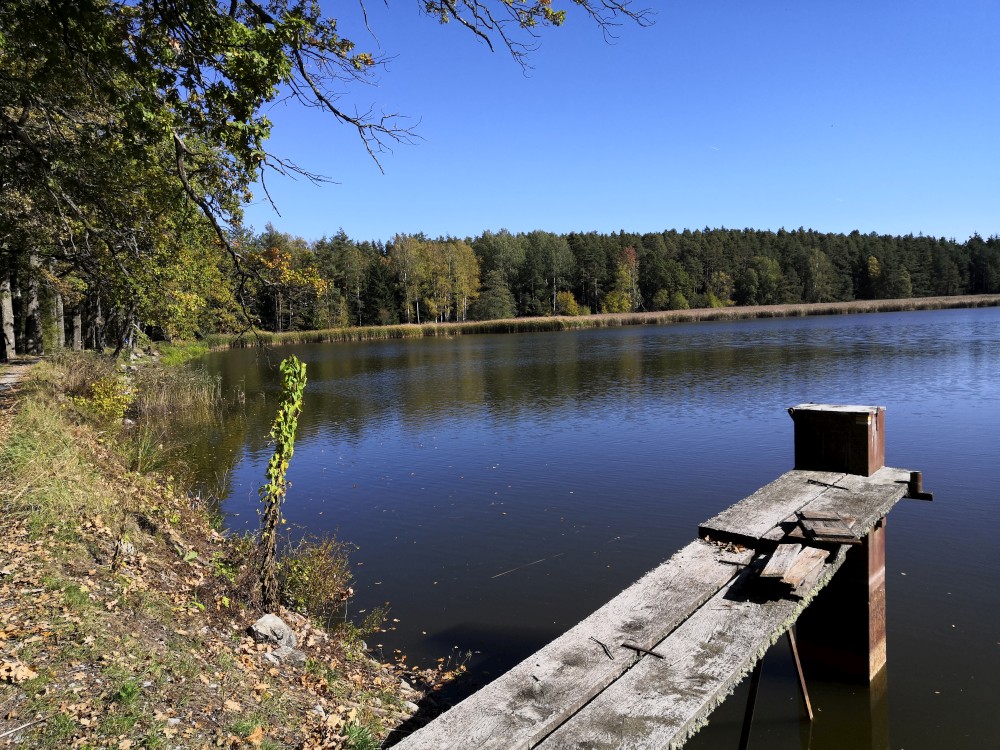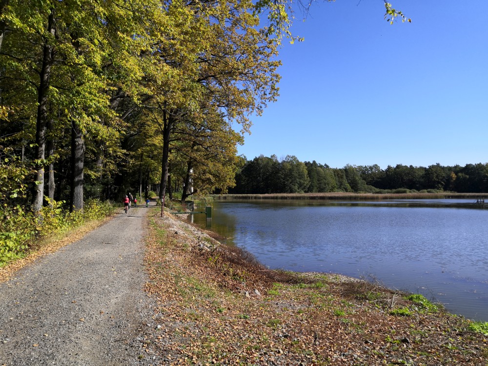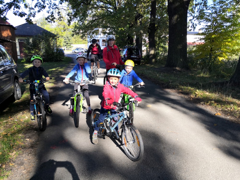 Jedeme znovu s Kepkovýma na kola na Veselsko. Tentokrát nejede Jana s Martínkem. Startujeme zase na Vlkově. Jedeme po žluté kolem Prkenného rybníka dále na zelenou značku. Po ní pokračujeme k silnici, po které jedeme asi dva kilometry až do Jemčiny. Jedeme do místního Konibaru. Bohužel mají zavřeno.