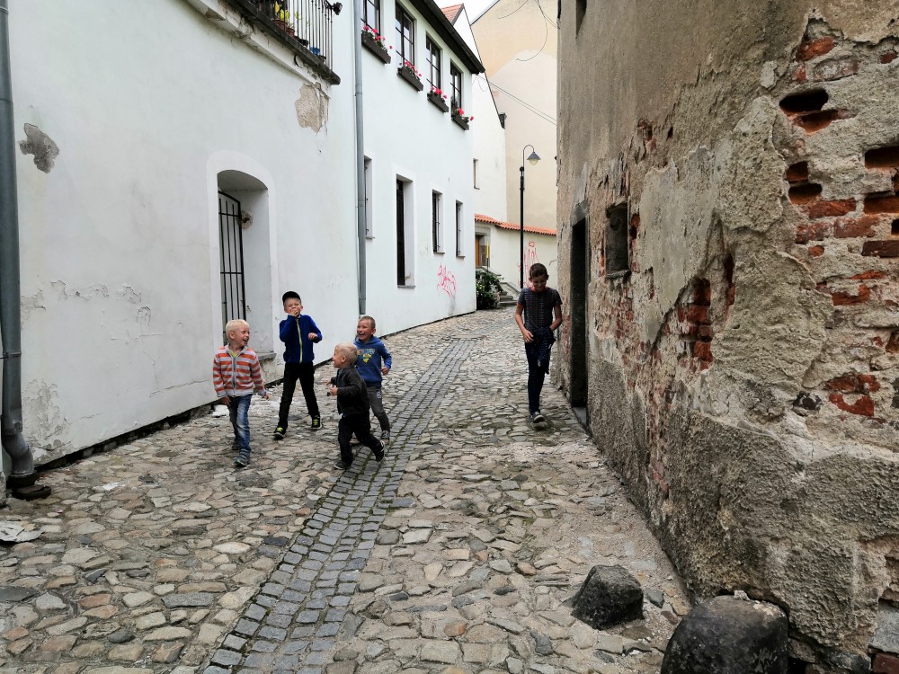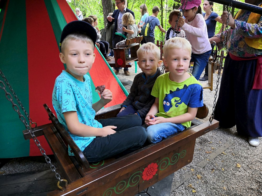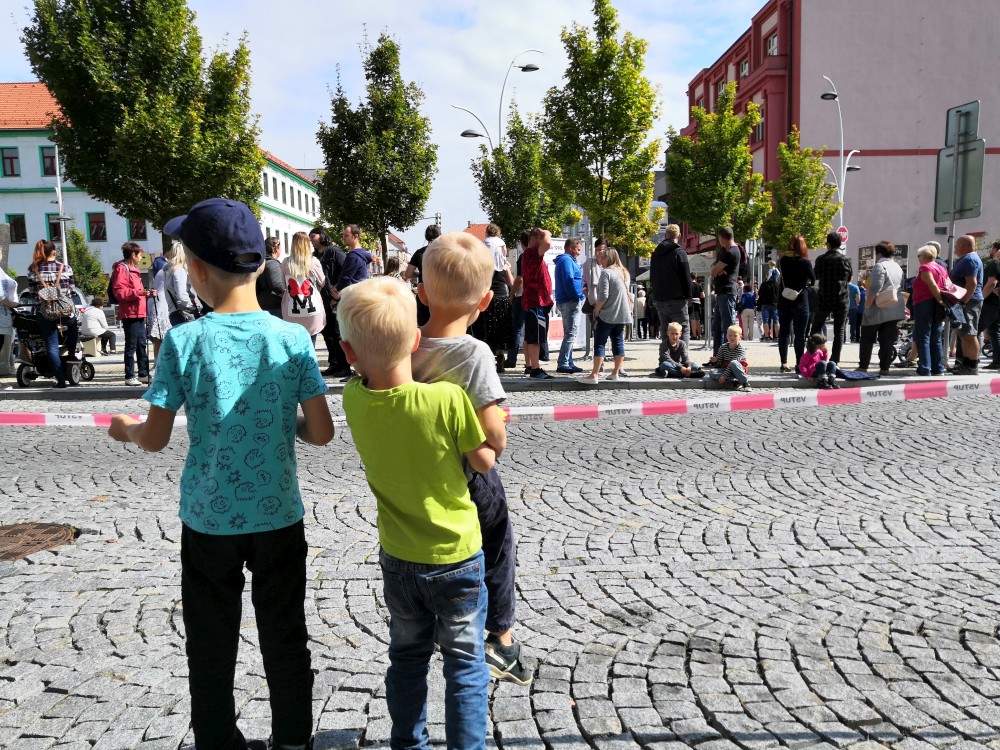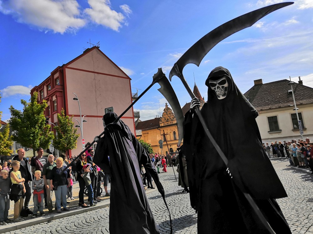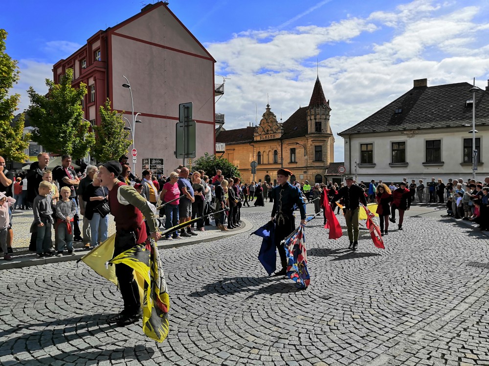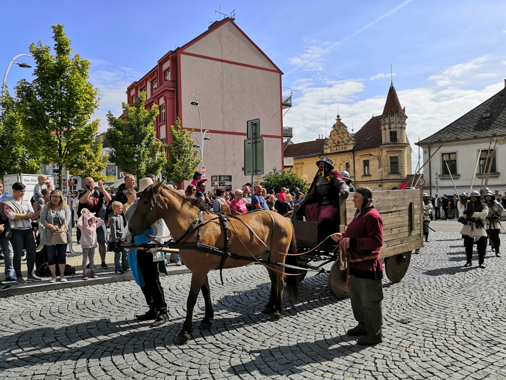 Jdeme se podívat na Táborská setkání. Začínáme kostýmovaným průvodem. Pokračujeme do sadů, kde jsou atrakce pro děti. Potkáváme se s Mášou a jejíma klukama.