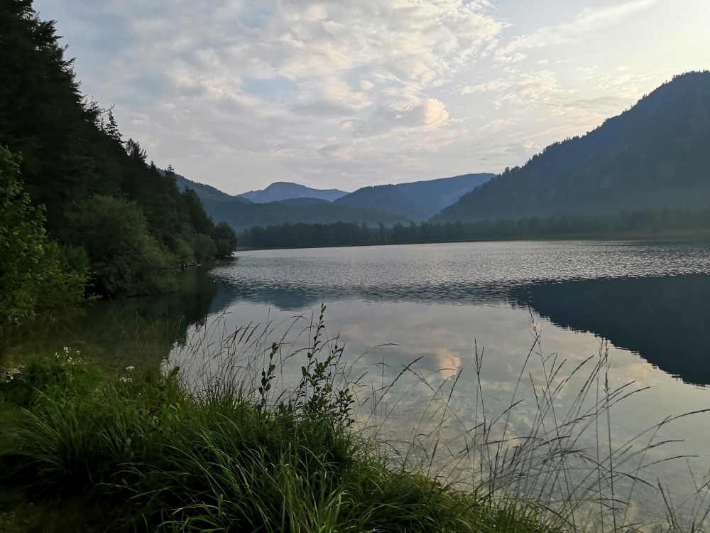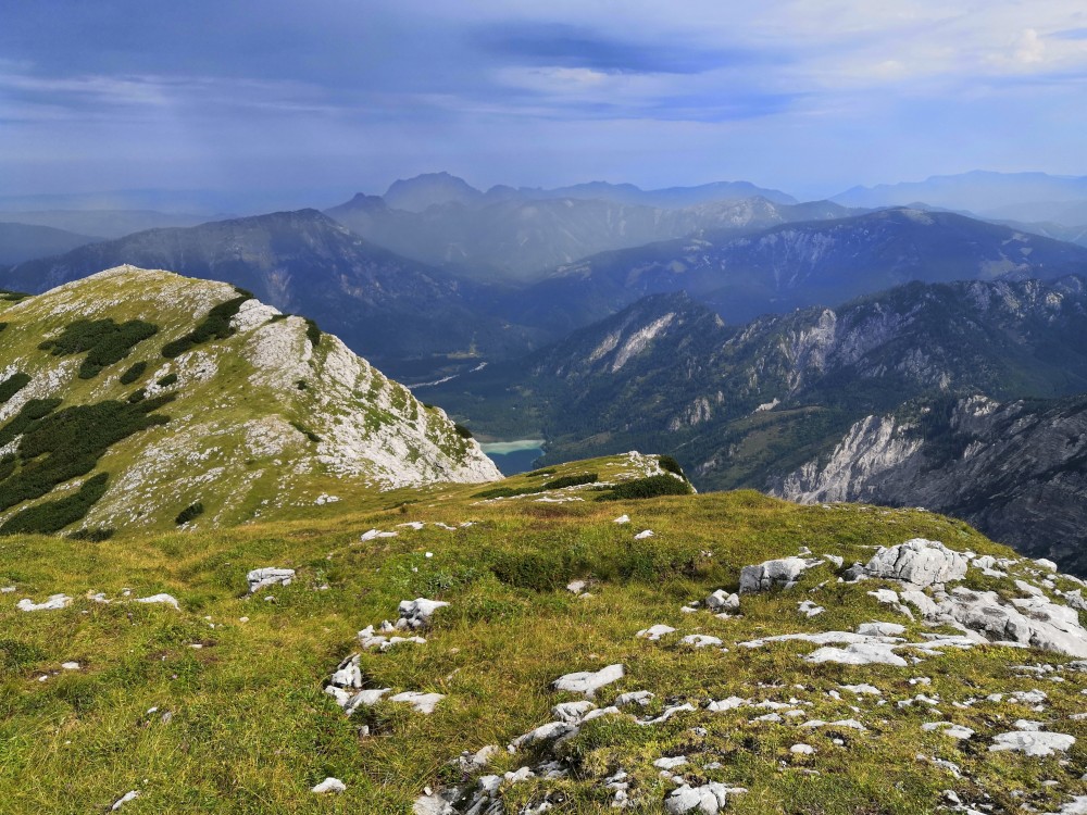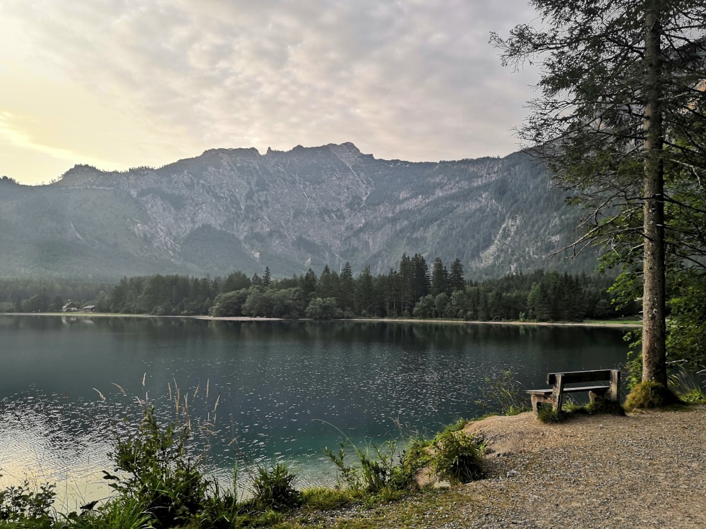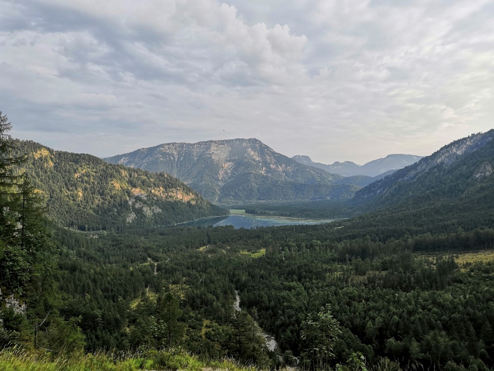 Dnes vyrážím sám bez dětí a Jany na výšlap do Alp. Vstávám ráno kolem půl čtvrté, sedám do auta. Jedu do Totes Gebirge, kolem sedmé parkuji u jezera Offensee. Zahajuji stoupání směr Rinnerkogelhutte. Cesta je strmá. Potkávám kamzíka. Kouká na mě a vůbec se nebojí. Po vystoupaných cca 850 výškových metrech se objevuje chata.