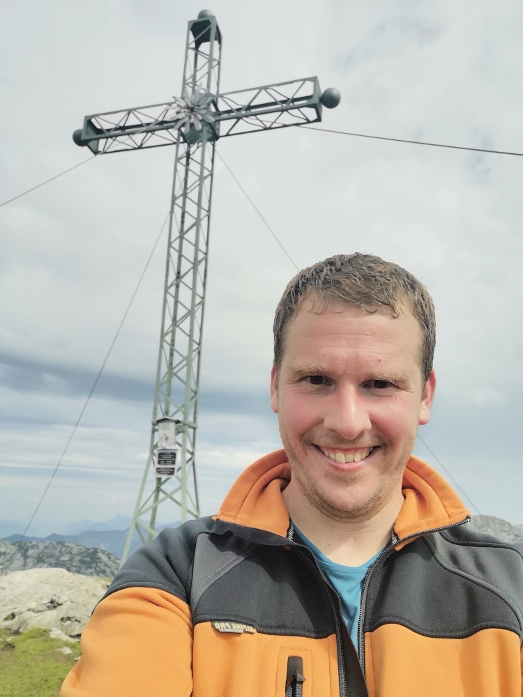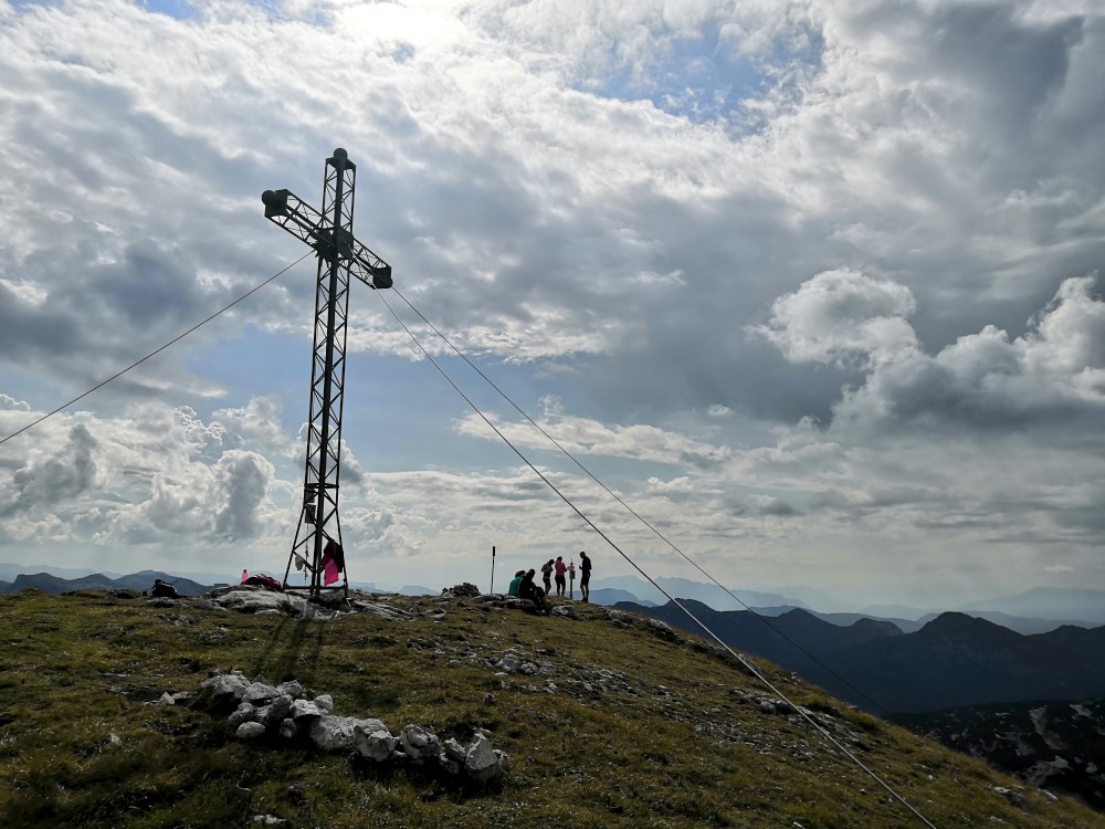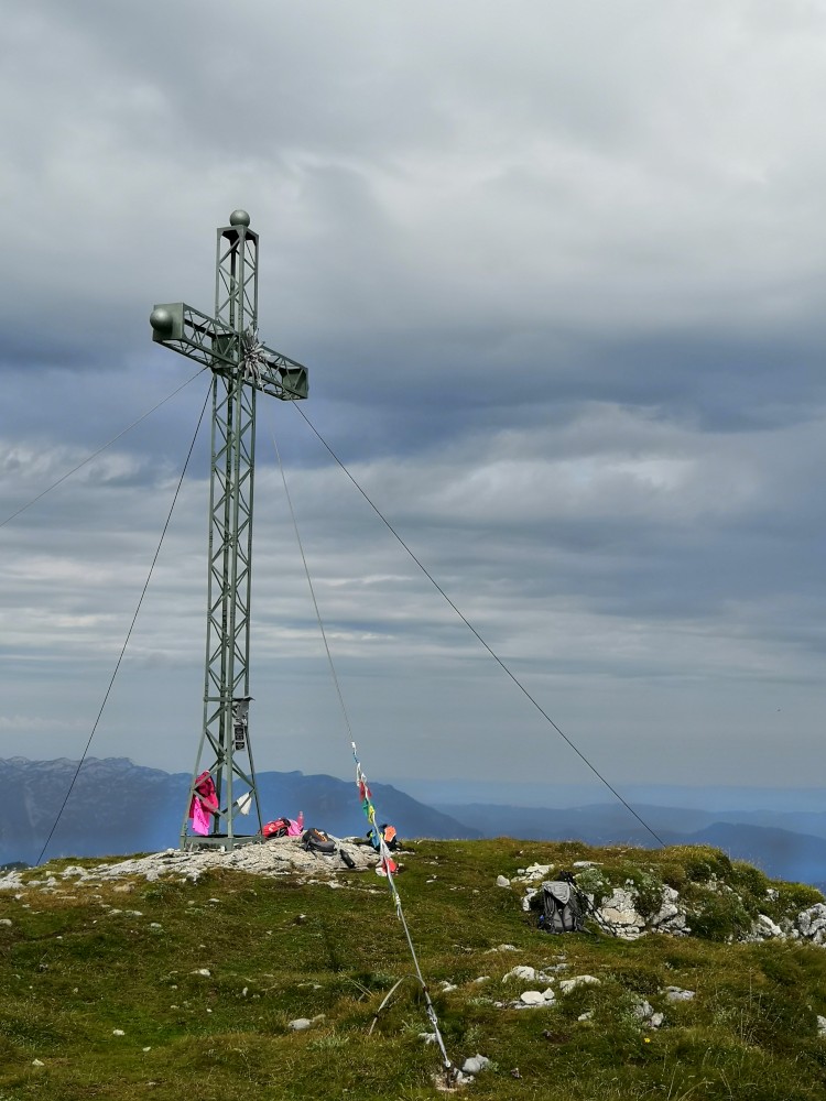 Pokračuji kolem ní dále k vrcholu Rinnerkogel. Horší se počasí, začíná pršet. Po chvílí ale přestává. Kolem 11 hodiny dobývám vrchol s velkým kovovým křížem. Z vrcholu jsou krásné výhledy. Dávám svačinku, ještě asi půl hodinky se kochám. Pak už klesám dolů. Zastavuji na Rinnerkogelhutte na polévku a pivko. Pak pokračuji k autu a jedu domů. Do osmi večer jsem doma. Moc pěkný aktivní relax.