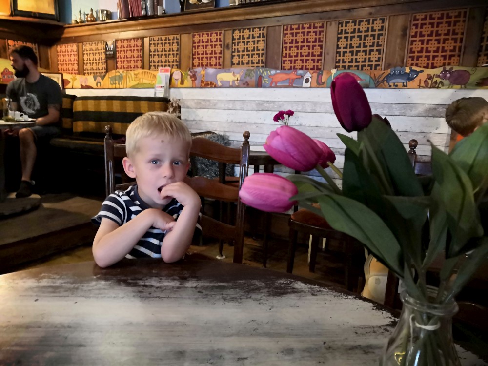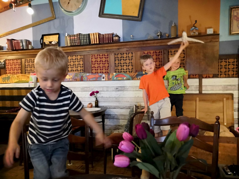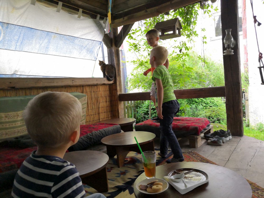 Kluci moc chtěli do čajovny, tak vyrážíme. Pak jdeme ještě na pizzu na náměstí do Klidu.