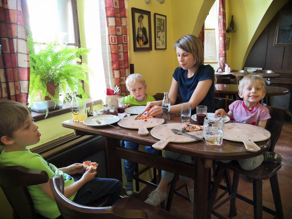 Jdeme na pizzu do města. Pak vyrážíme na dětský den na Horkách. Kluci plní úkoly a také sedají do policejního a hasičského auta nebo traktoru. Po dětském dni nás ještě čeká Nikolky oslava 11.tých narozenin. Na oslavu přijel i Martina známý se sportovní Audinou. Martin nás všechny provezl. Byla to jízda.