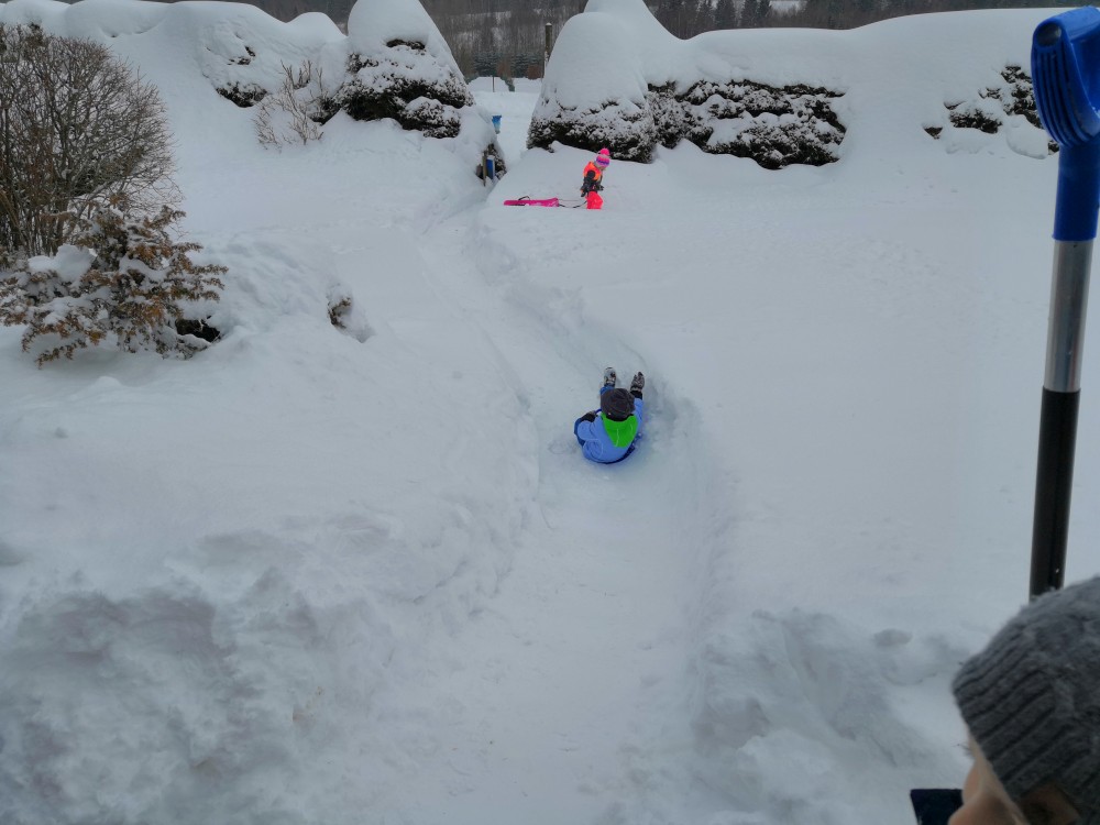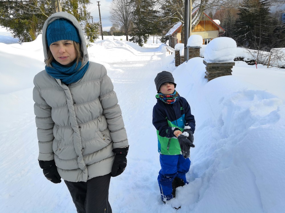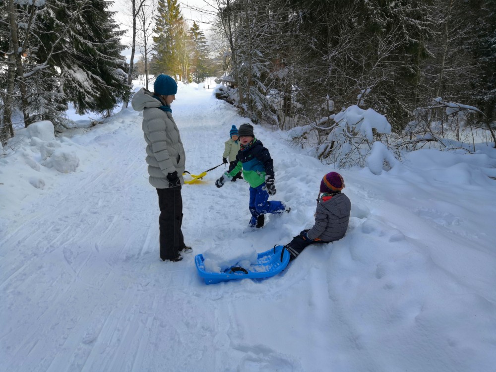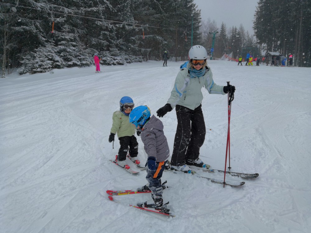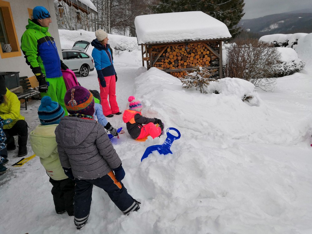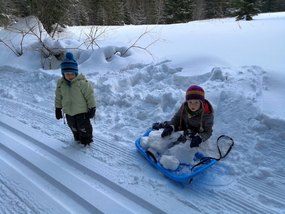 Po pozorování jelenů se přesouváme do hotelů Srní a dáváme oběd. Pak už se přesouváme na pension a bobujeme korytem na zápraží, děti i dospělí. Dáváme večeři, uspáváme a trávíme společně večer.