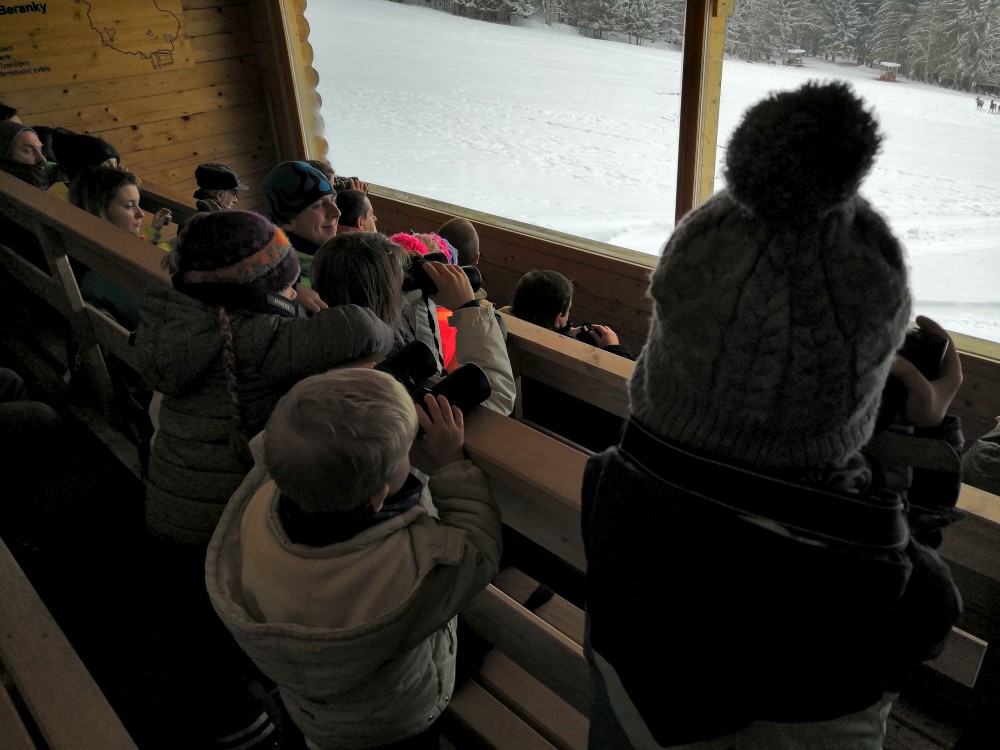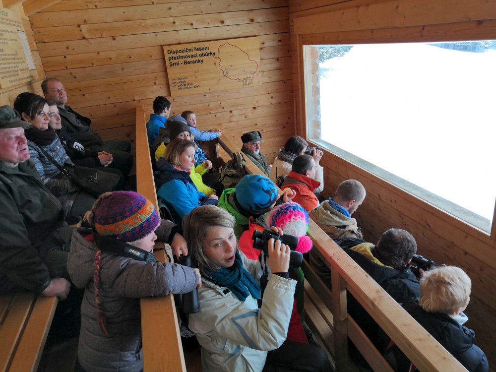 V sobotu celkem brno vstáváme a jedeme lyžovat do Hartmanic. Kupujeme permice na 2 hodinky. Martínek poprvé lyžuje. Jezdím s ním. Jana jezdí s Jiříkem. Víťa se připojil k Elišce. Pak dáváme lehký oběd u místního kiosku a rychle se přesouváme do Srní. Máme od 12 hodin domluveno porozování jelenů v pozorovatelně Beranka. Průvodce nás vede se skupinkou dalších lidí do srubu s prosklennou stěnou. Sedíme na lavicích a přes sklo pozorujeme několik desítek jelenů. Přišla si to natočit i Česká televize. Večer jsme ve zprávách.