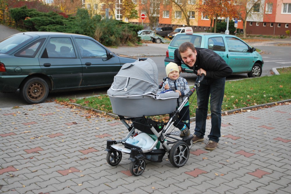 Ráno nás děti samozřejmě moc dlouho spát nenechají. Abych po snídani bytu trošku odlehčil, beru Jiříka do kočáru na procházku směr Krkavec. Jiřík krásně usíná a spí asi dvě hodiny. Procházka se tedy celkem protáhla, ušli jsme tak 8 kilometrů a terén byl občas dost dobrodružný.