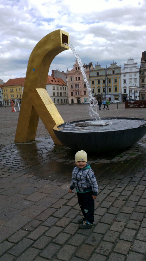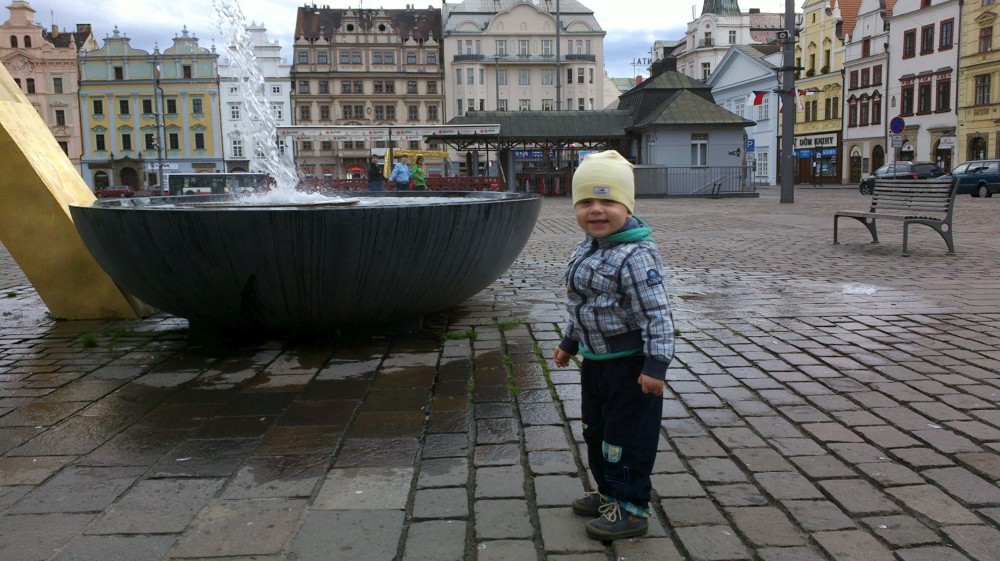 Po návratu jdeme všichni společně na procházku k Šindlovskému rybníku. Jiřík se ale musí najíst a Víťa touží po jízdě tramvají, takže nás ostatní opouštějí, Jana bere Jiříka a já jedu s Víťou tramvají do Plzně. Jdeme se podívat na náměstí, Víťovi se nejvíc líbí kašna. Jedeme pak zpět a na ranči Šindlovák se potkáváme s ostatními. Odpoledne se loučíme a jedeme zase domů.