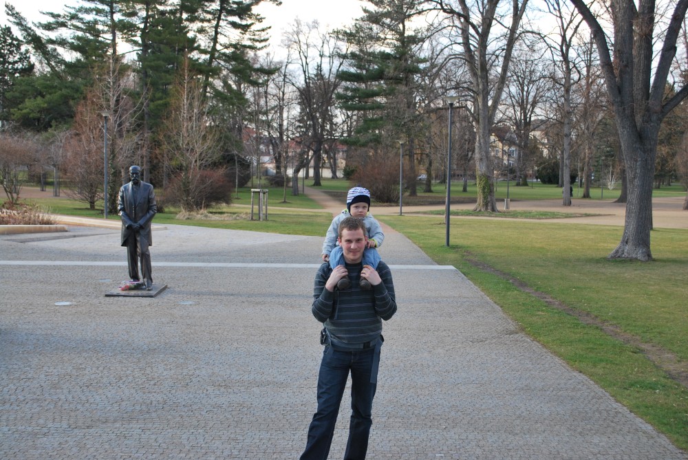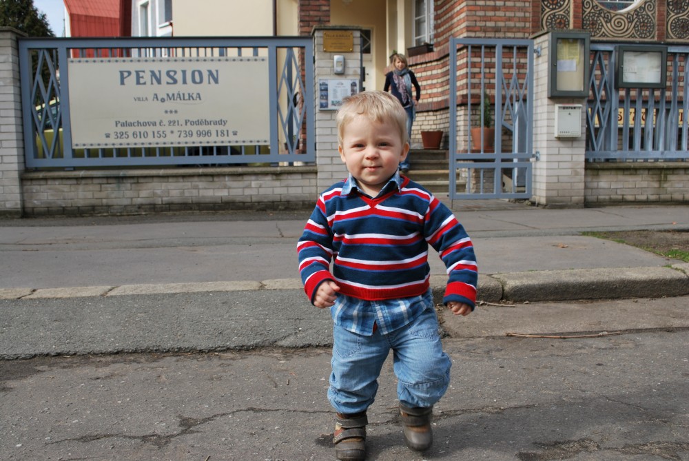 Vyrazili jsme do Poděbrad navštívit dědu v lázních. V Praze jsme poobědvali a nakoupili v Ikee a kolem půl třetí se ubytováváme v penzionu A.Málka. Dáváme kafčo a vínko s dědou, dáváme krátkou procházku a jdeme zpět na penzion uspat Víťulu.