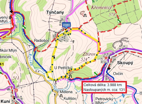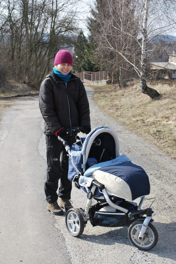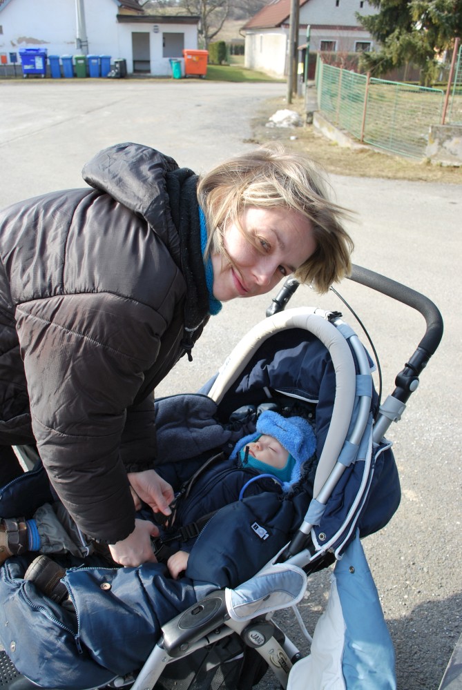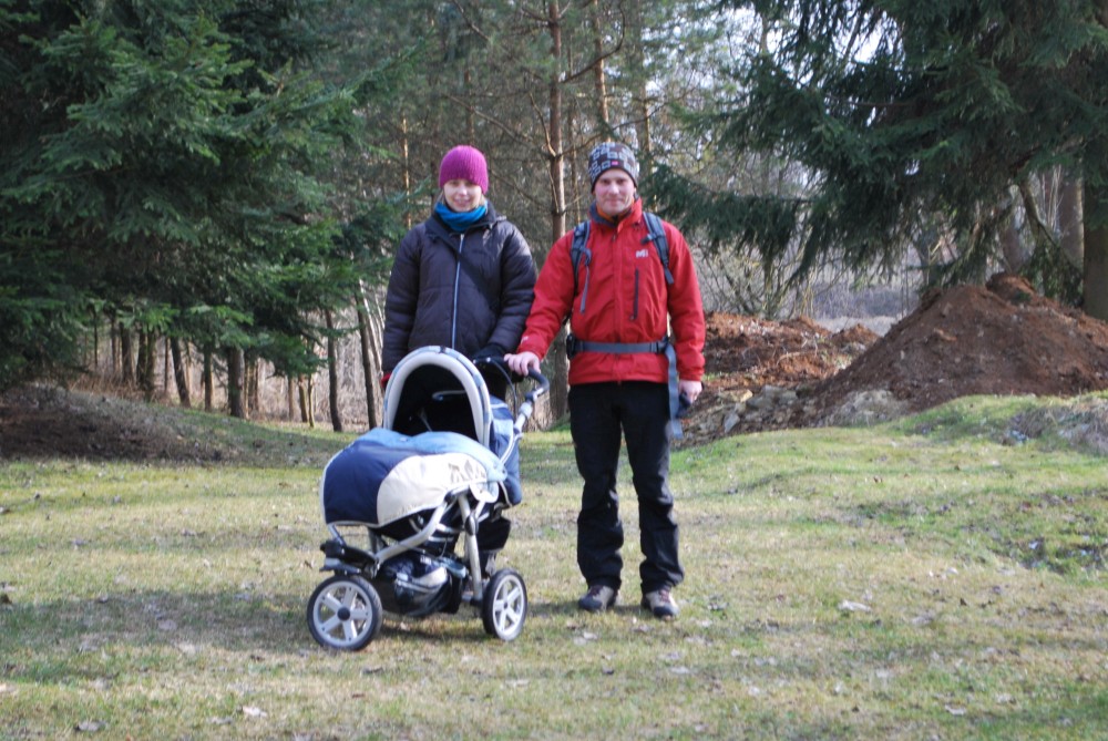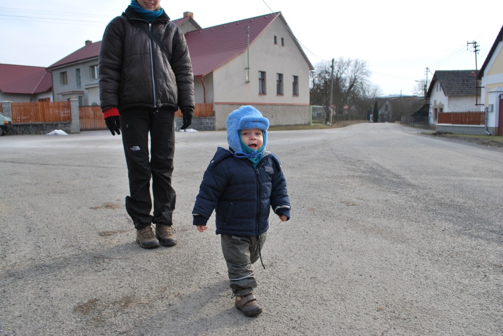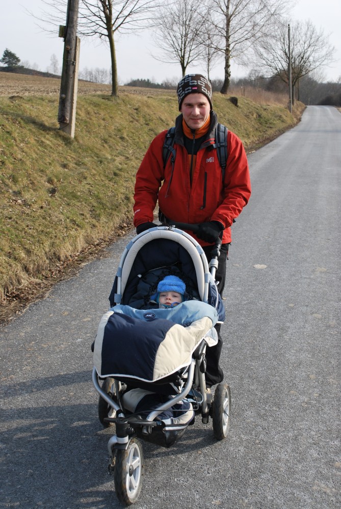 Po týdnu vyrážíme na výlet zase do stejné oblasti okolo Petrovic. Dnes jedeme sami s Víťou a Janičkou. Máme naplánován krátký okruh z Týnčan. Jedeme až po obědě. Je jasné, že Víťa hned usne v autě. Když jsme přijeli do Týnčan, už půl hodinky spal. Ještě bude spát tak hodinku a půl, takže bychom ten pětikilometrový okruh měli zvládnout.
