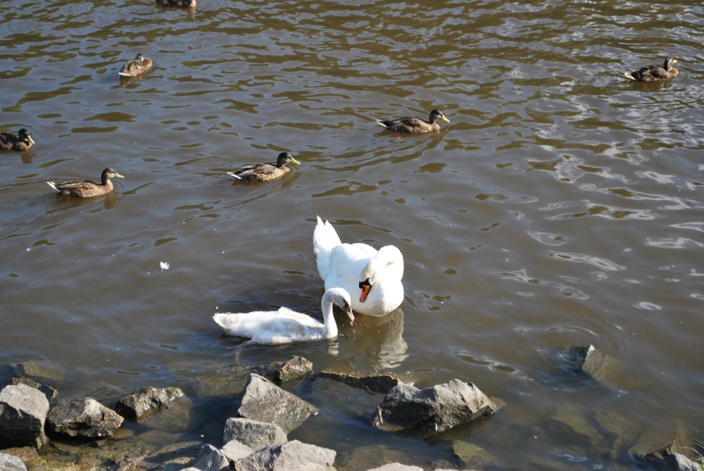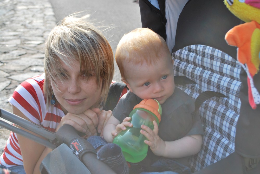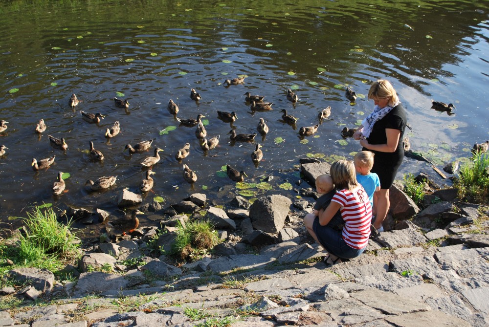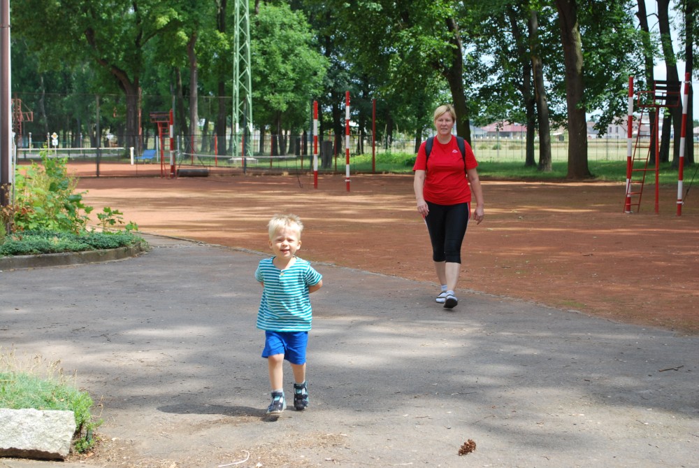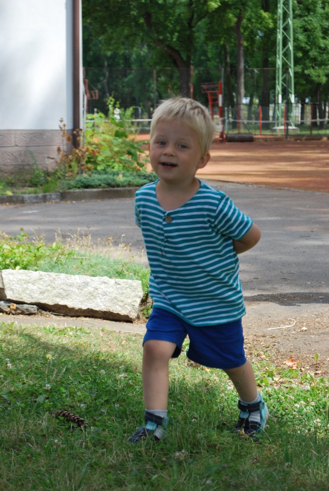 Procházíme se po parku, Víťa se koupe ve fontáně a brodí se místní říčkou, kupujeme si pizzu a pak zmrzlinu. Jdeme se podívat k Labi. Víťovi se líbí kachny a labutě.
