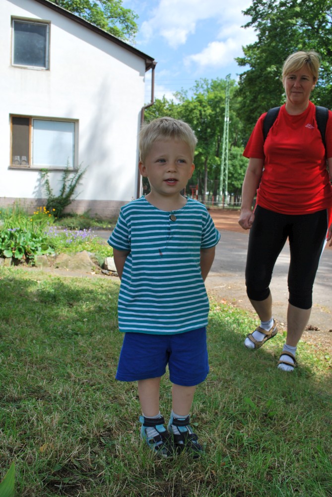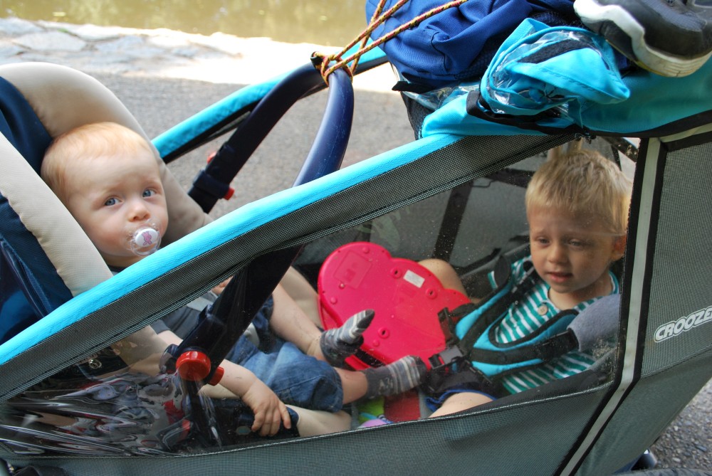 Ráno dáváme moc dobrou snídani na pensionu, balíme a přesouváme se na parkoviště u nábřeží. Montujeme vozík do speciální úpravy pro dvě děti, nasazujeme kolečkové brusle a jdeme se projekt kolem Labe. Připojuje se k nám babička na půjčeném kole a vyrážíme směr Nymburk. Cestou se k nám ještě připojuje Vládín a Katkou. Bydlí kousek, tak za námi přijeli na kolech.