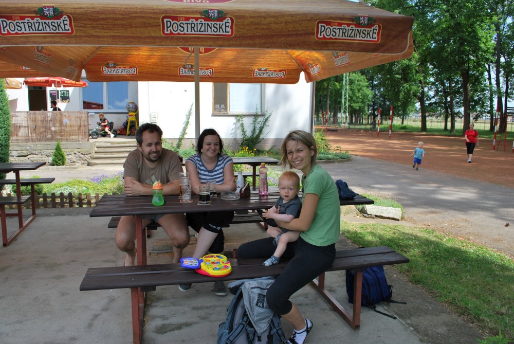 Společně dáváme občerstvení v takové hospůdce před Nymburkem a pak ještě v Nymburku regulérní obídek. Pak jedeme zpět do Poděbrad. Balíme zase vše do auta, loučíme se s babičkou Hankou a jedeme za Vládínem a Katkou na návštěvu. Po příjemném posezení u nich na zahradě sedáme do auta a jedeme do Tábora.