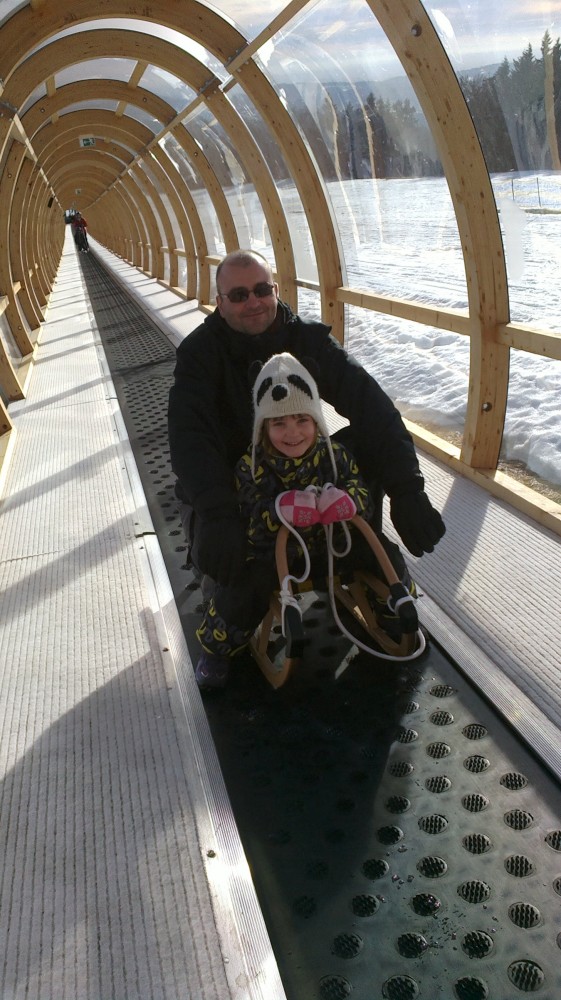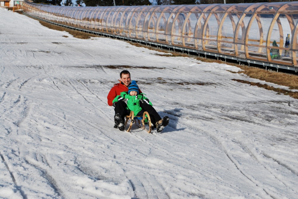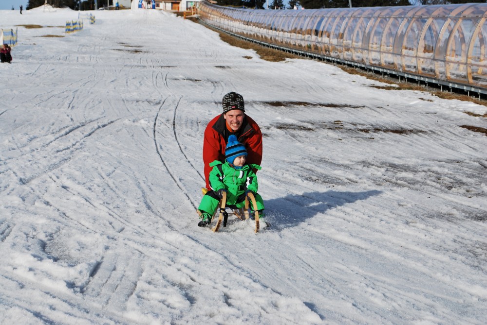 Letos byla na sníh slabá zima, ale na hory jsme se přesto na chvilku dostali. Vyrazili jsme celá rodinka s rodinkou švagra Martina na víkend do Lenory. V sobotu dopoledne jsme si s Martinem zajeli na pár hodin zalyžovat na Mitterdorf, pak jsme vyzvedli naše rodinky a jeli jsme na Mitterdorf znovu, tentokrát s dětma na sáňkovačku. V neděli jel na lyže Martin s Nikolkou, my ostatní jsme vyrazili na asi šestikilometrový okruh v okolí Lenory. Odpoledne jsme vyrazili zase domů.