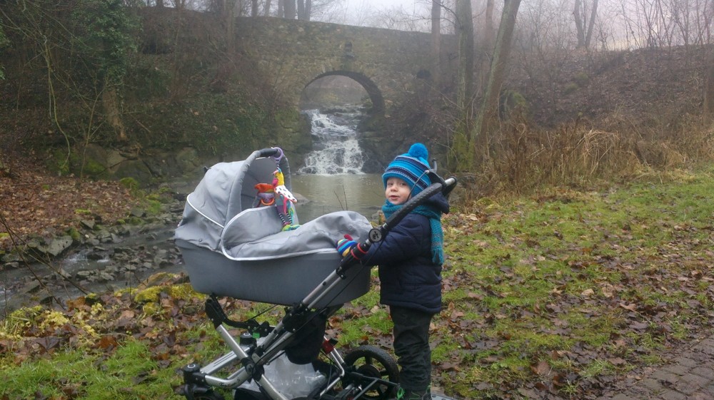 Jdu na dopolední procházku s klukama po Táboře. Jdeme se podívat na vodopád k Tismenickému potoku.