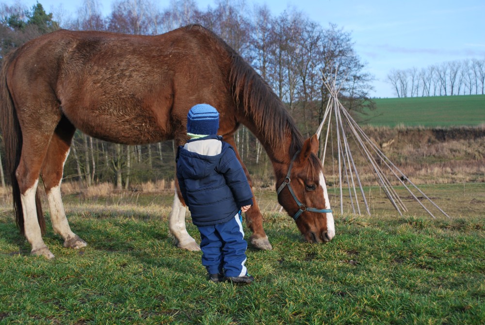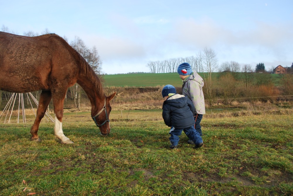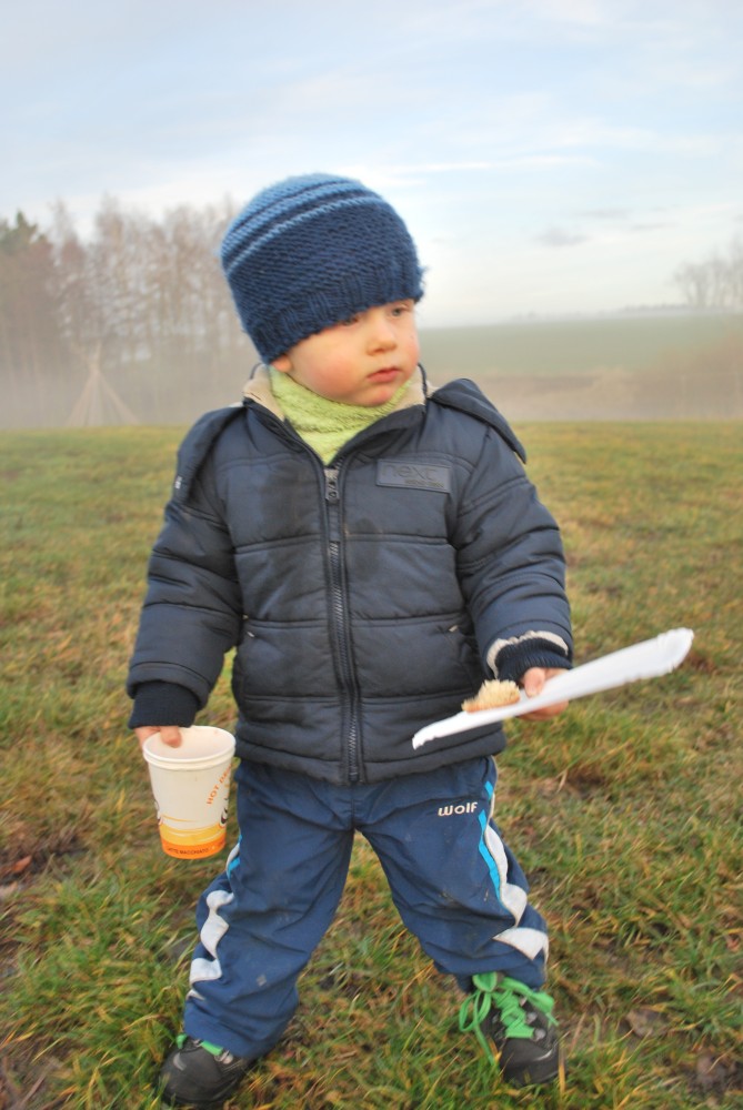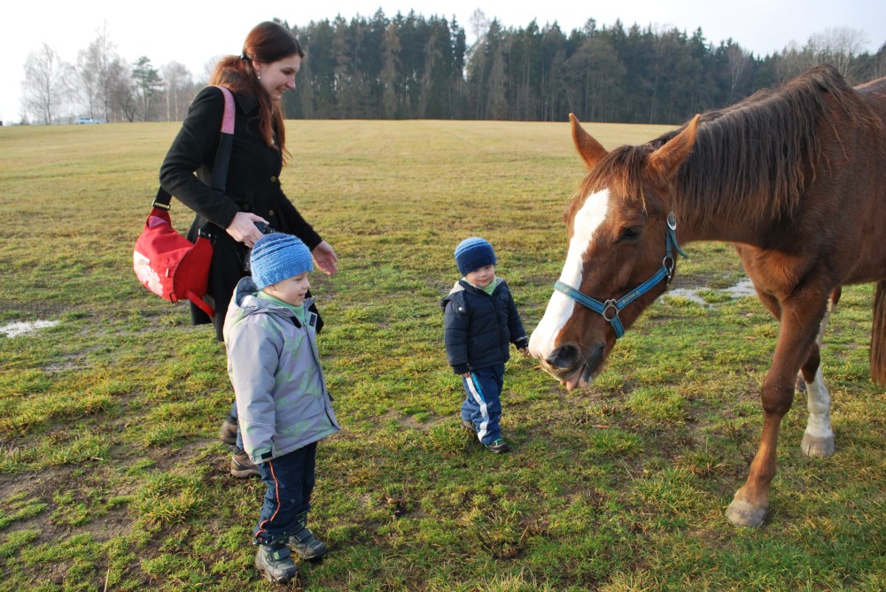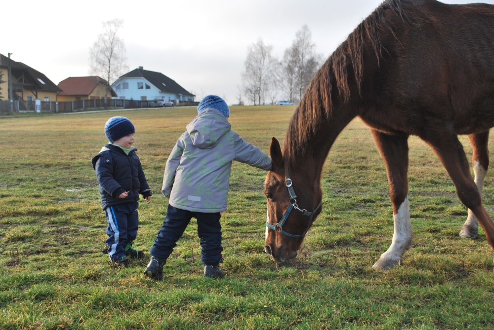 Přivezli jsme Dorce nějakou mrkvičku a jablíčka. Ochutnali jsme dětský punč, rozdělali ohýnek a opekli buřta (Víťa chleba). Koukli jsme na další zvířátka a Víťa si také užil atrakci a malým letadlem.