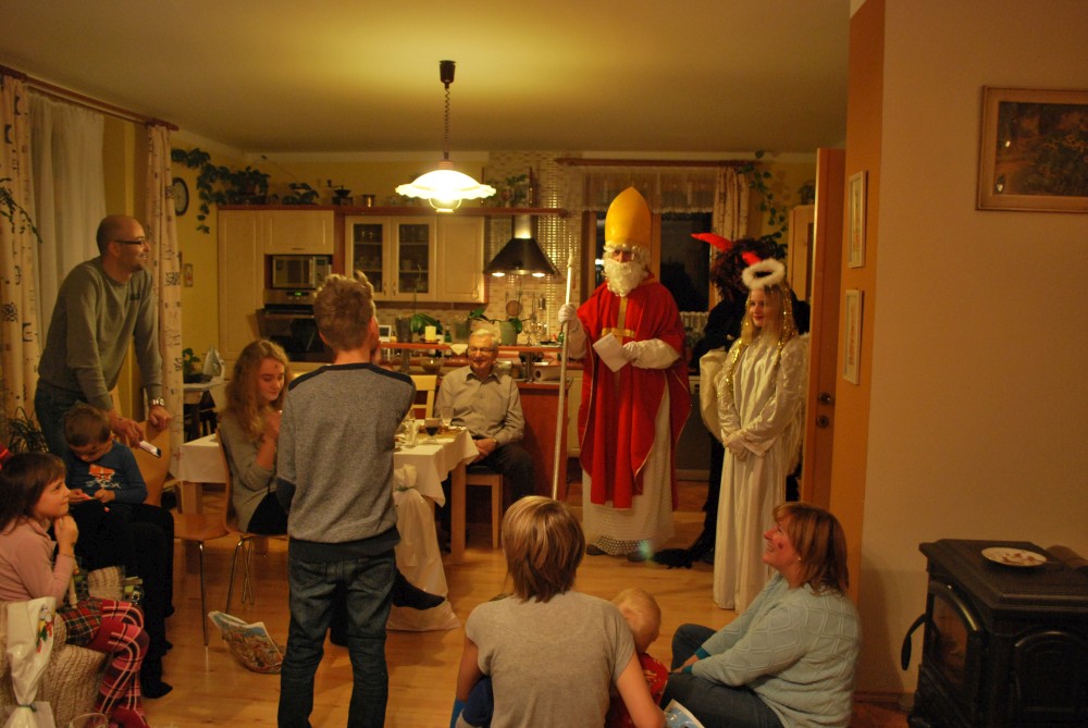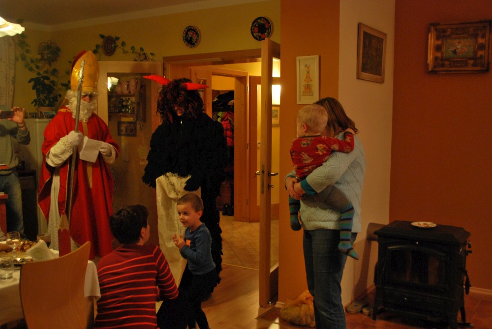 Na Horky zase dorazil čert, mikuláš a anděl. Asi si ten náš Víťa své občasné zlobení uvědomuje. Jinak by neměl tak nahnáno a dokonce se neskrýval pod stolem.