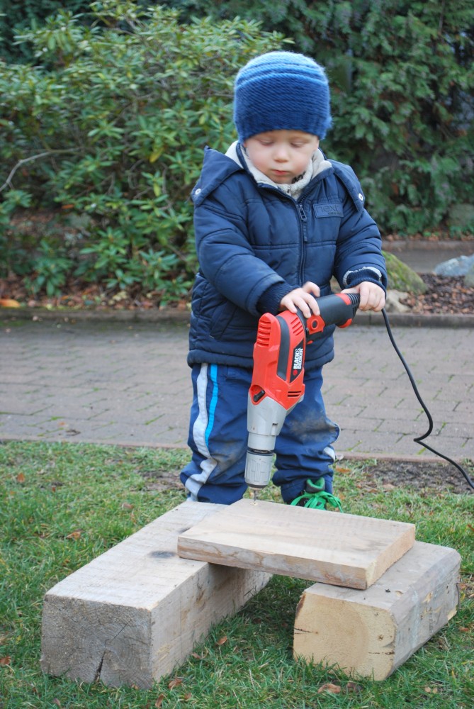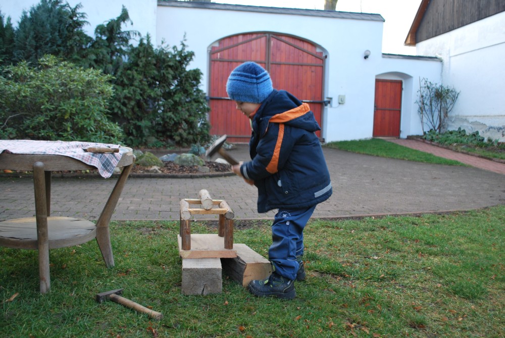 Vezmeme kolečko a navozíme materiál, pár prkýnek i nějakou tu kulatinu. Od táty si půjčíme nějaké nářadí a hřebíky. Budeme potřebovat kladívka, pilku (lépe elektrickou) a vrtačku.