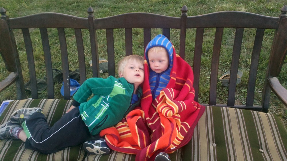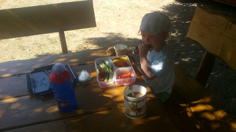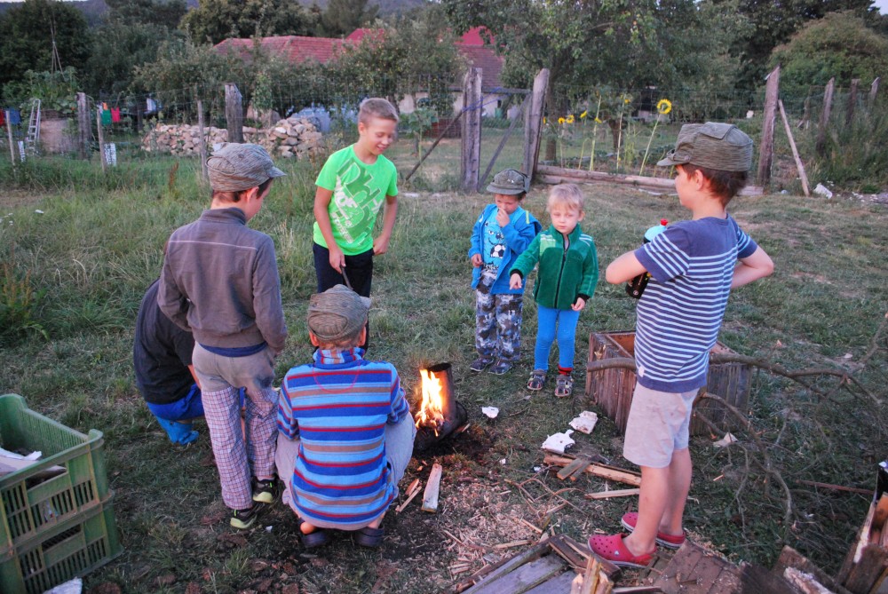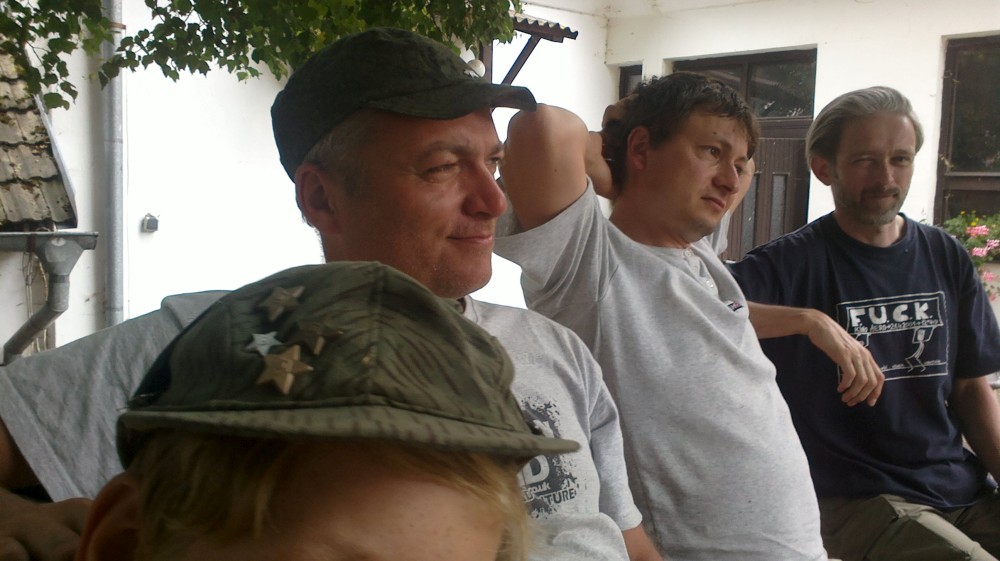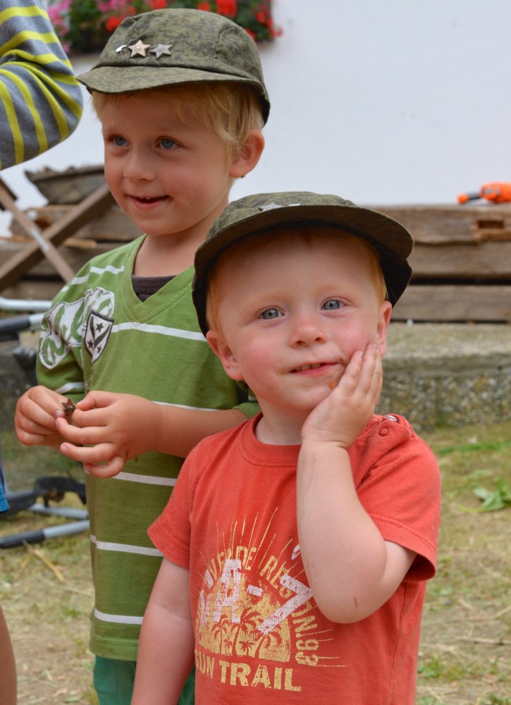 Letos mají kluci na farmě pistolky s molitanovými náboji. Hrají si na vojáky, procházejí výcvikem, plní různé úkoly, dostávají za ně odznáčky na vojenské čepice a také probíhají bitvy tatínků proti synům na louce, kde spíme.