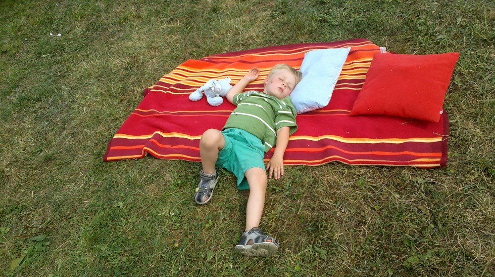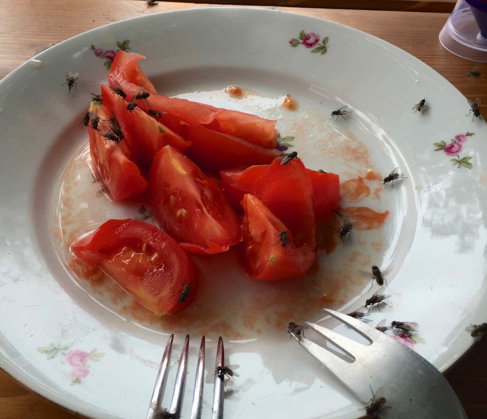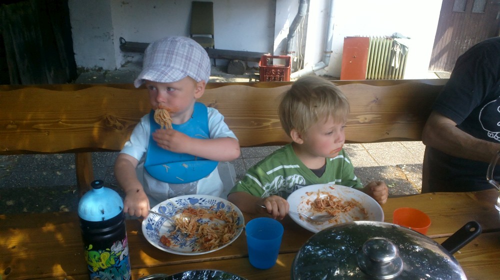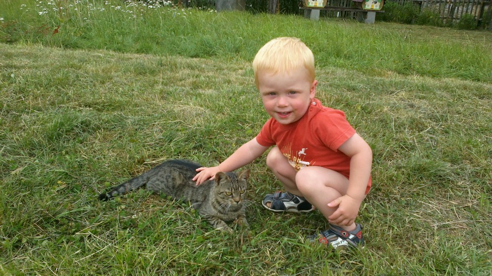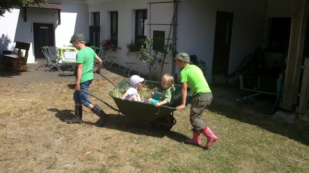 Hodně času kluci tráví na seně a u koz. Jako již tradičně nás na farmě obtěžují obří hejna much, a to zejména u oběda, když cítí nějakou dobrotu. Ale dá se to vydržet.