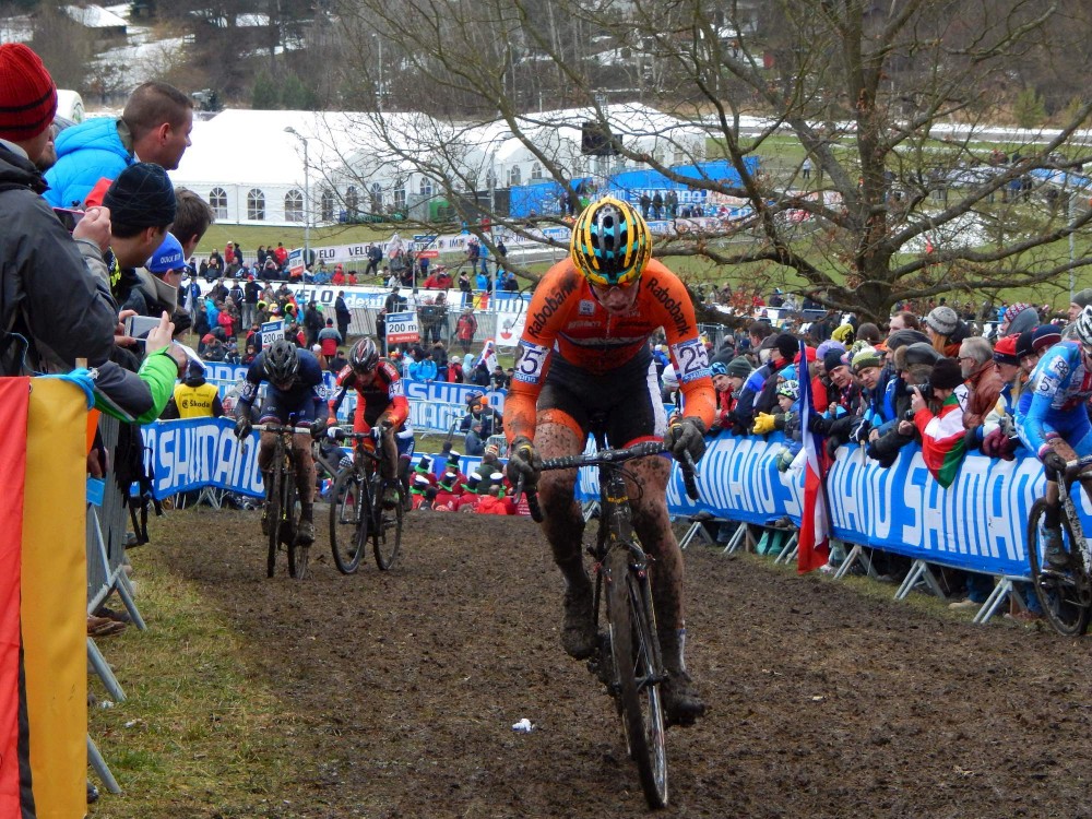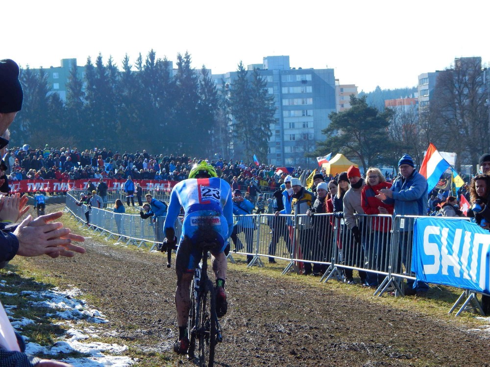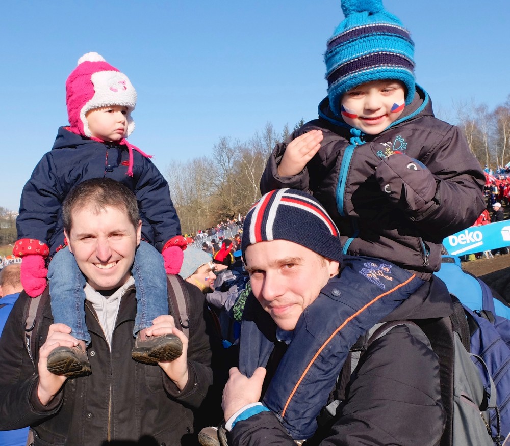 Vyrazili jsme s Víťou na MS v Cyklokrosu. Máme to jen přes kopec. Jdeme s Pavlem a Kryštůfkem, potkáváme ještě Radka s Tončou. Koupili jsme lístek jen na neděli, na závod mužů do 23 let a na kategorii Elite. Při závodě Elite je už Víťa tak unavený, že mi usíná na zádech. Beru ho do náruče. Docela se mi za tu hodinku pronesl. Ale užili jsme si to, i když Češi zrovna moc neuspěli.