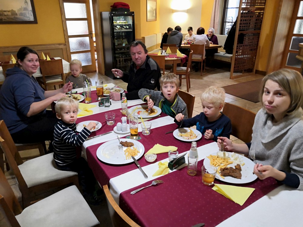 Jdeme na oběd s dědou Tomášem a tetou Zuzkou na Sezimák.