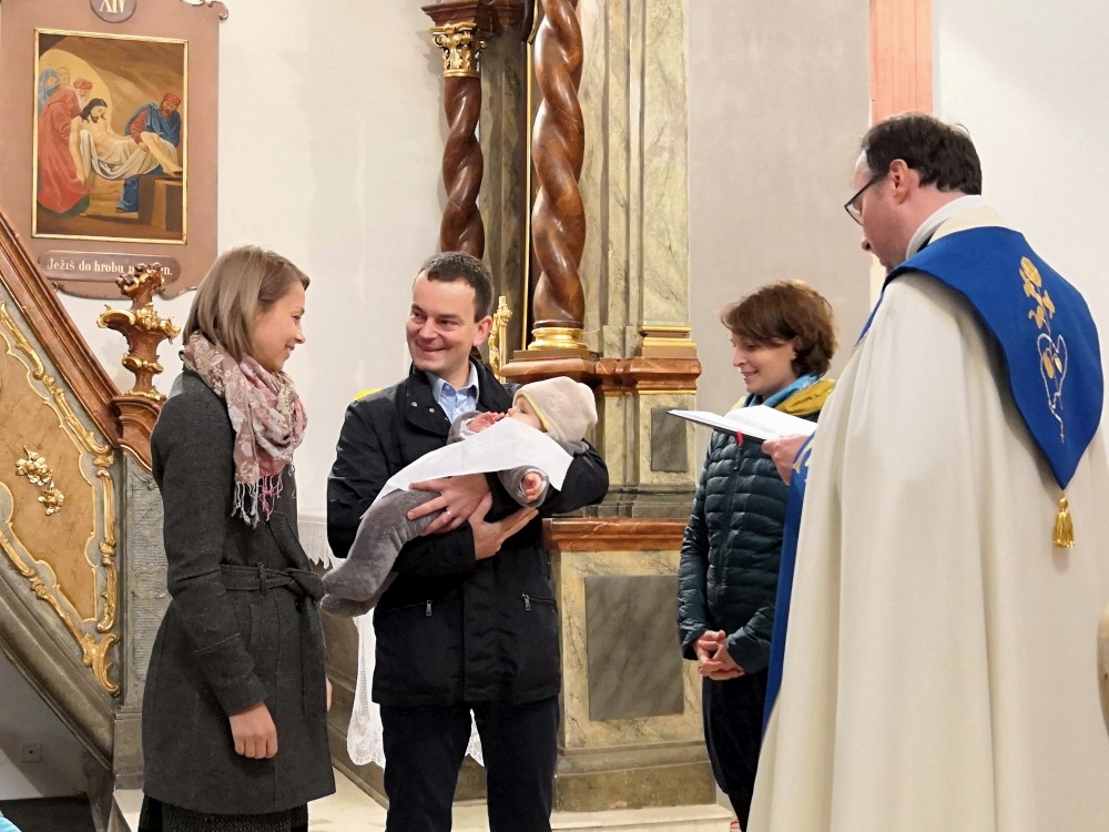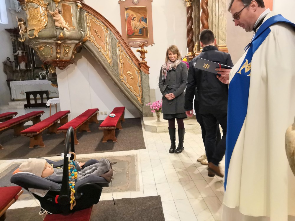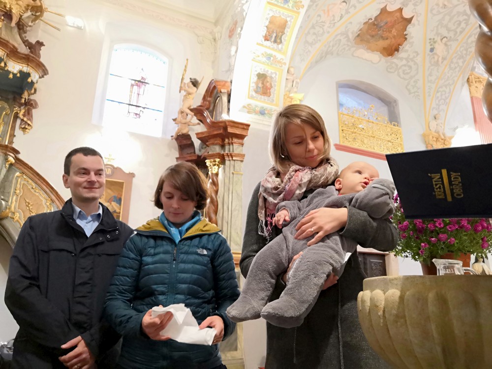 Dnes má malá Živa v Klokotech křest. Douchovka je kmotra. Po křtu nás čeká slavnostní hostina ve Svíčce.