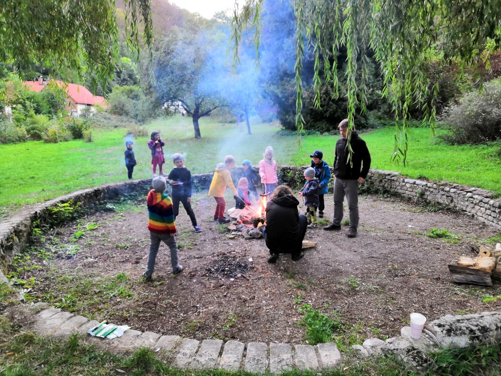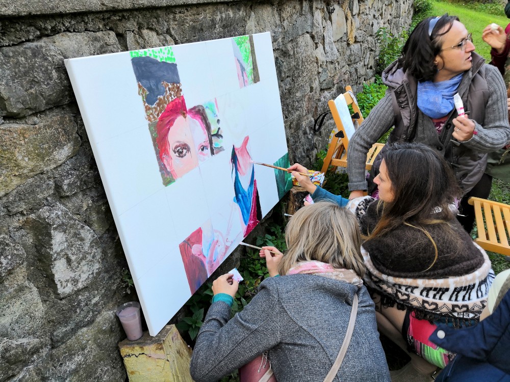 Po sestupu probíhá zahradní slavnost. Hudba, malování Pavly, Jaryna a Johanky podle fotky, oheň. Večer jdeme uspat kluky do našeho pokoje v místním klášteře a jdeme k ohni. Čekáme, zda se večer rozjedou nějaké kytárky, ale nestalo se tak. Dáváme tedy s Láďou prostý zpěv, a to až tak do čtyř do rána :-). Ještě několik dní se mi moc dobře nemluví.
