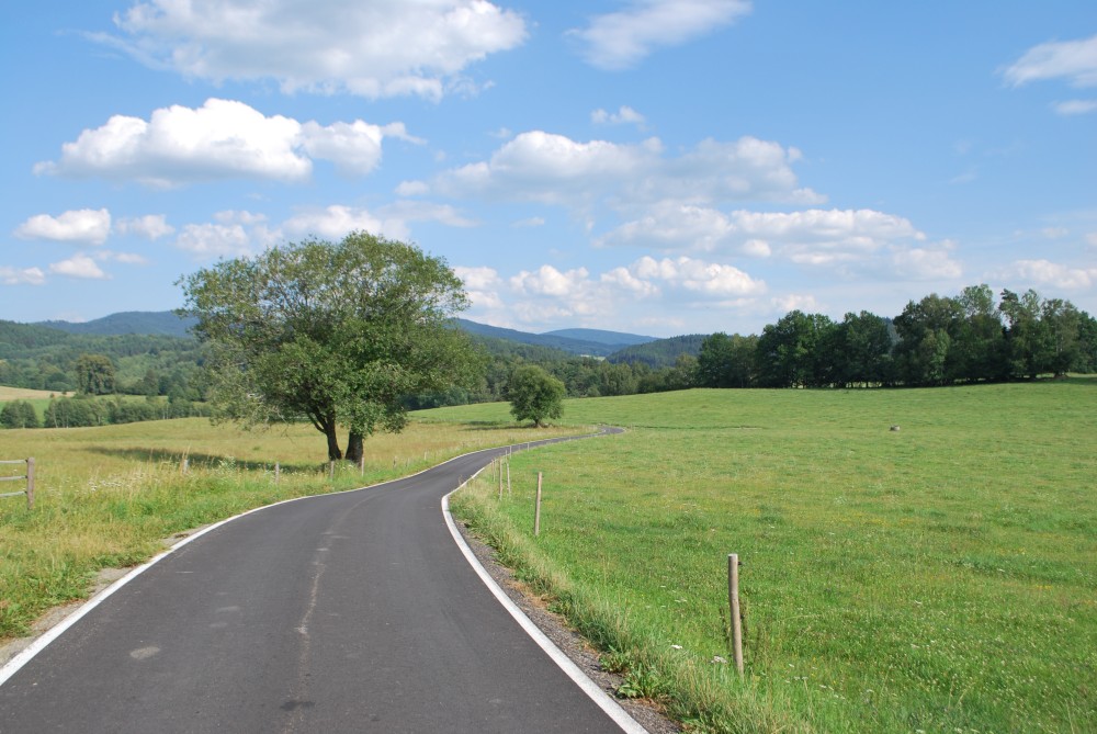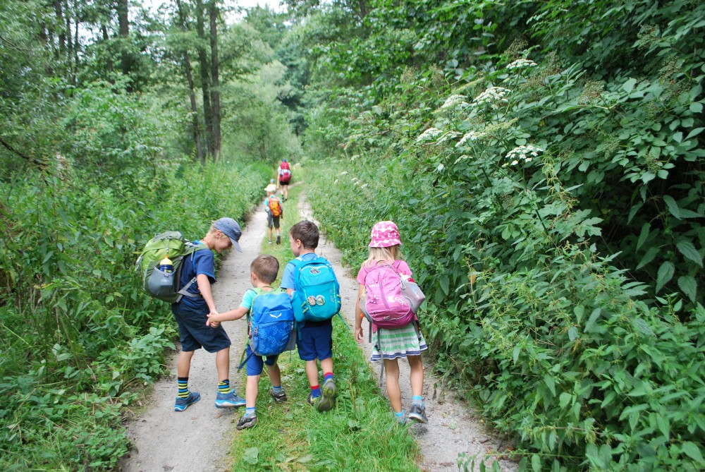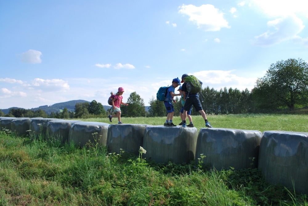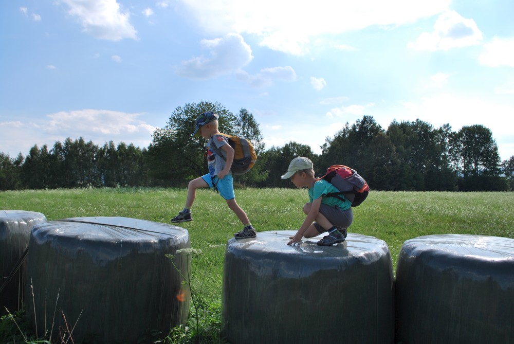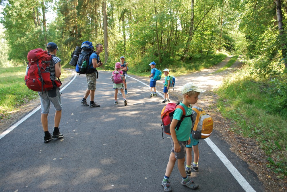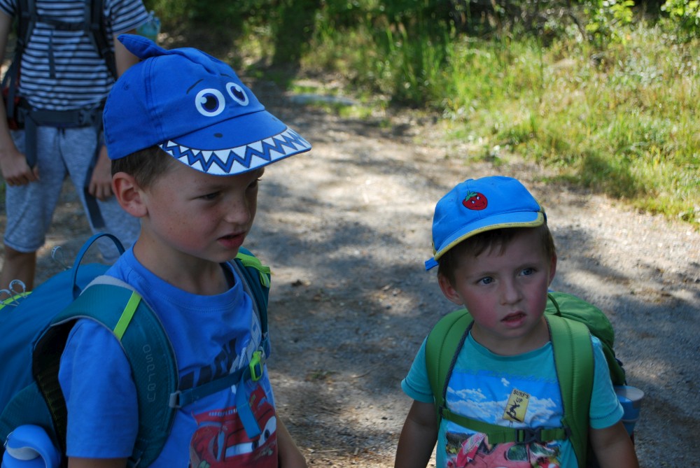Vystupujeme v Tiché, je dost velké horko. Děti si chvíli pohrají na místních prolejzačkách a můžeme vyrazit směr Cetviny. Cesta jde celkem pomalu, ale nakonec se dostáváme ke kostelu v Cetvinách. Odtud vyrážíme po žluté a zelené k Malši. Dáváme se koupačku v potoce a začínáme hledat místo na spaní. Pepa a Jirkou jdou hledat, já hlídám děti. Kluci se dlouho nevrací, tak jdeme hledat s dětma místo také.