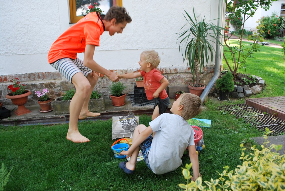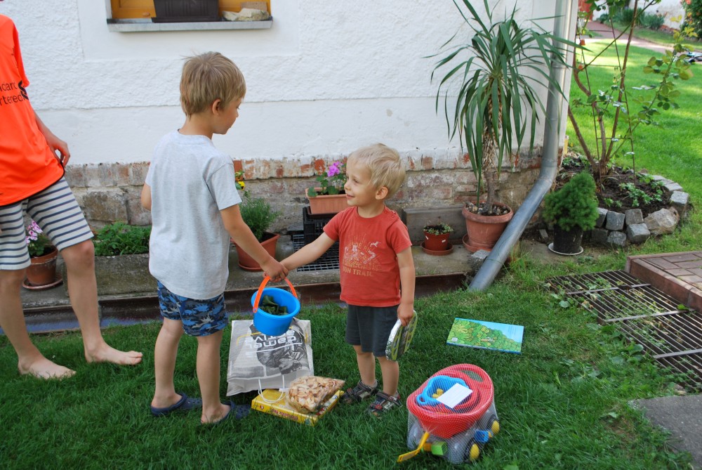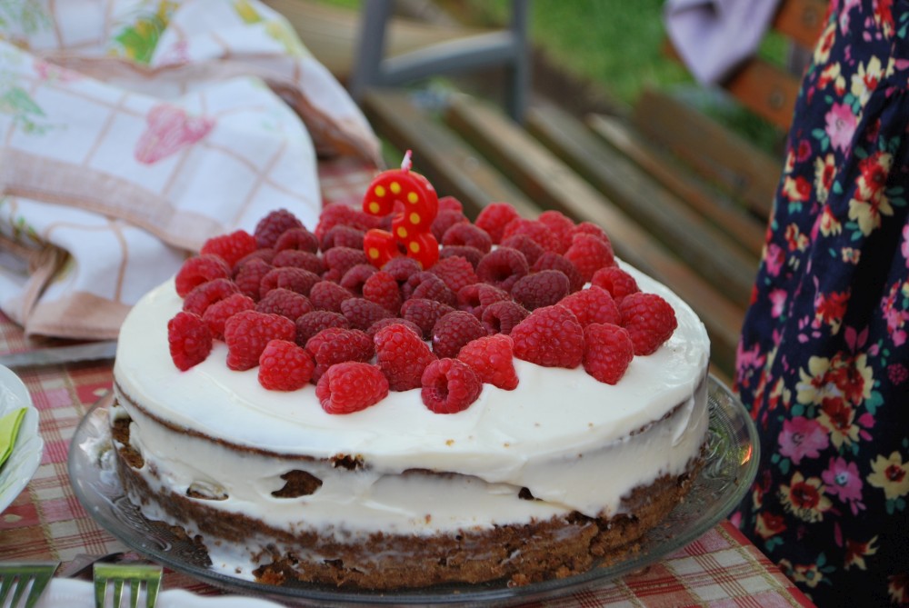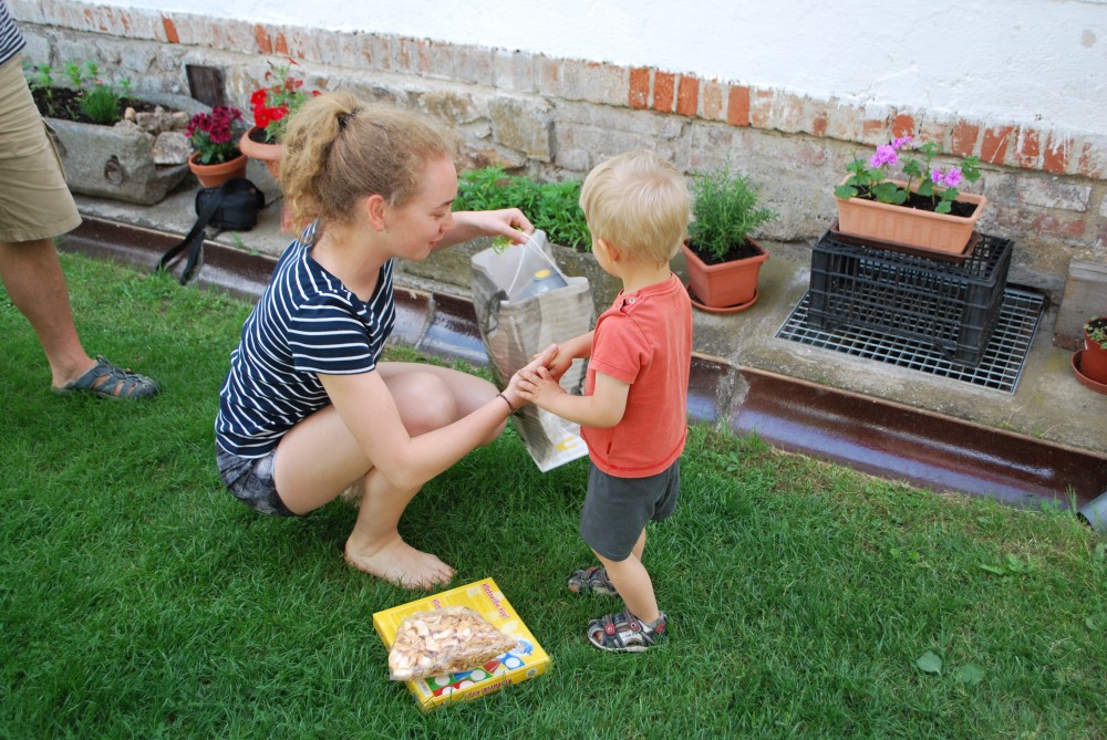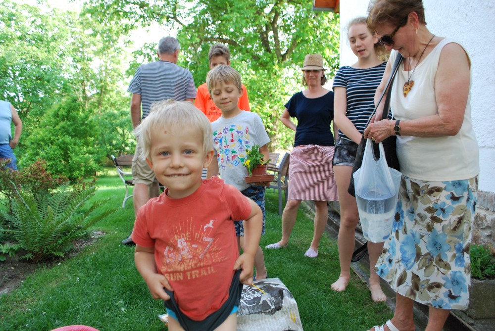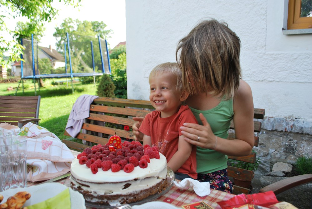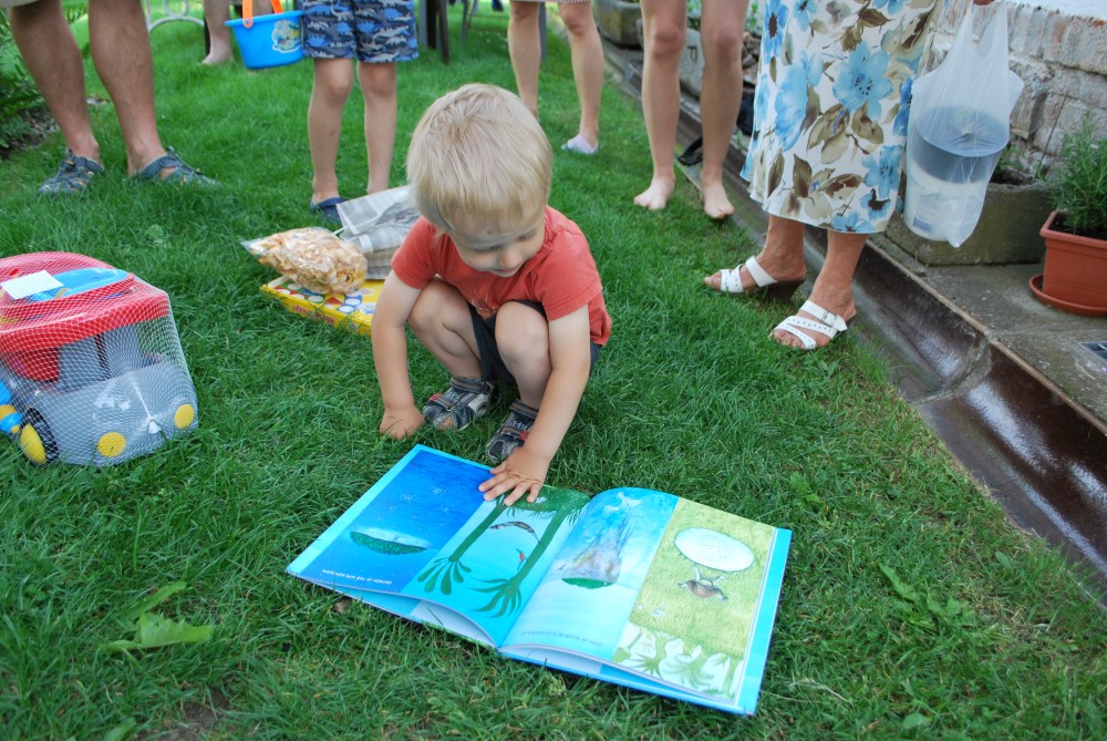 Dnes máme oslavu třetích narozenin Martínka. Je krásně, sedíme na zahradě. Martínek dostal dort a spoustu dárečků.