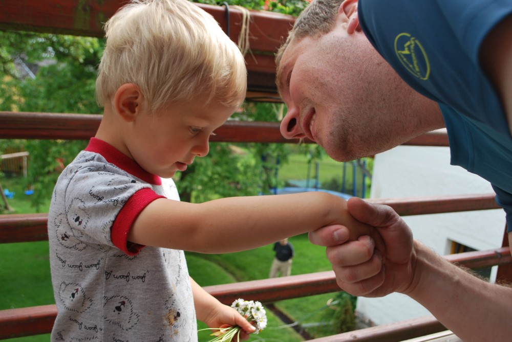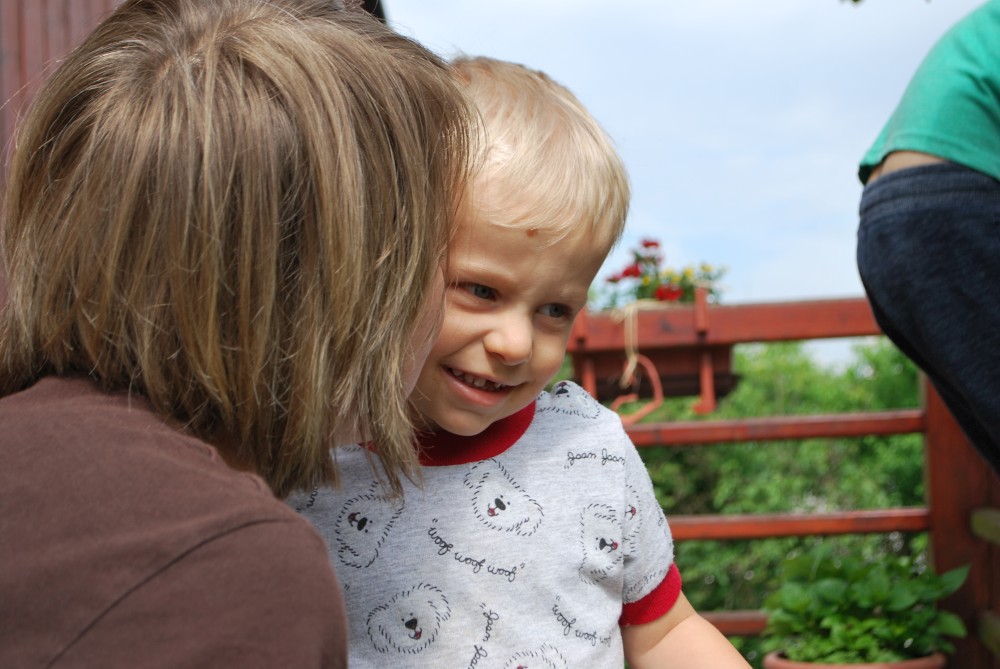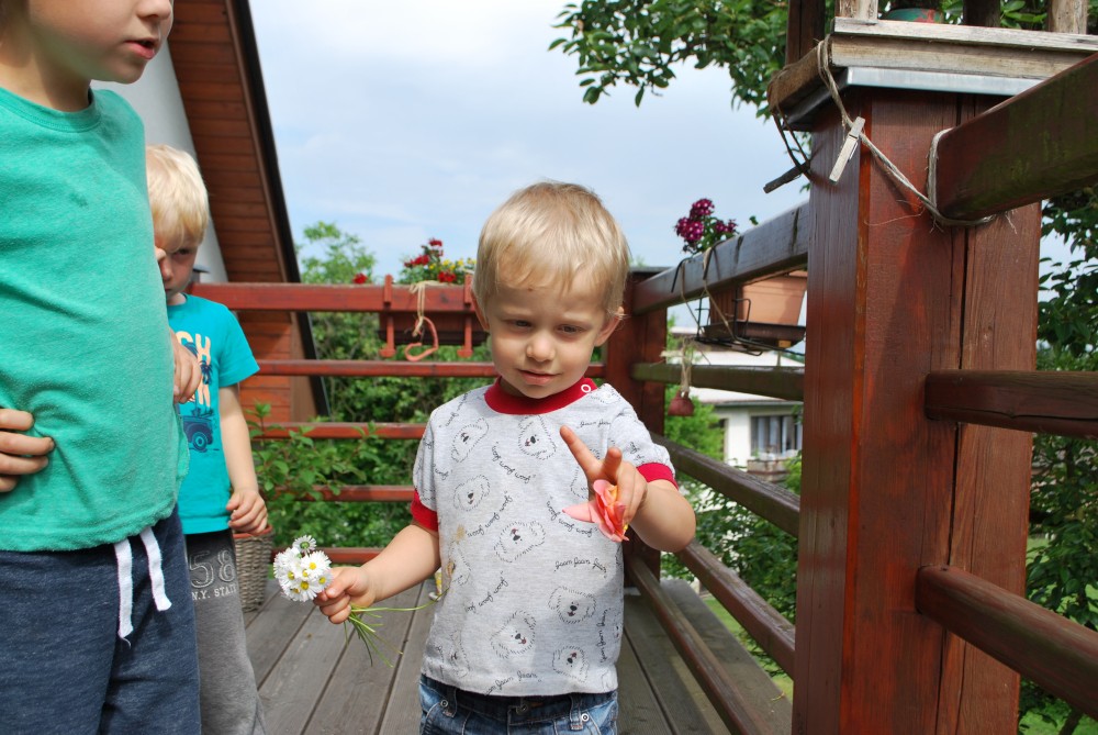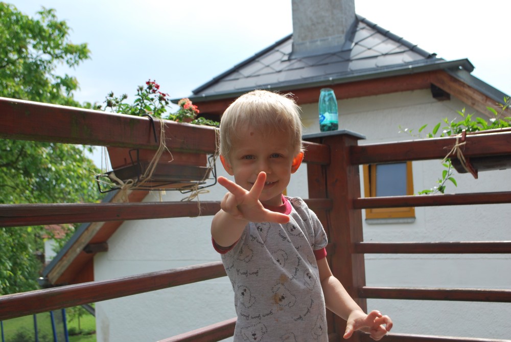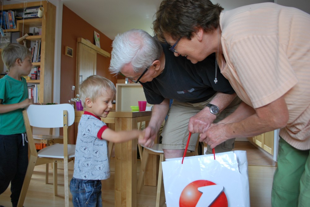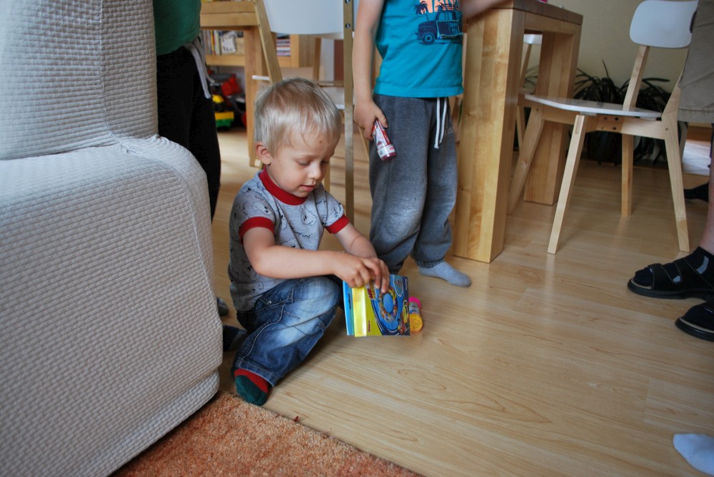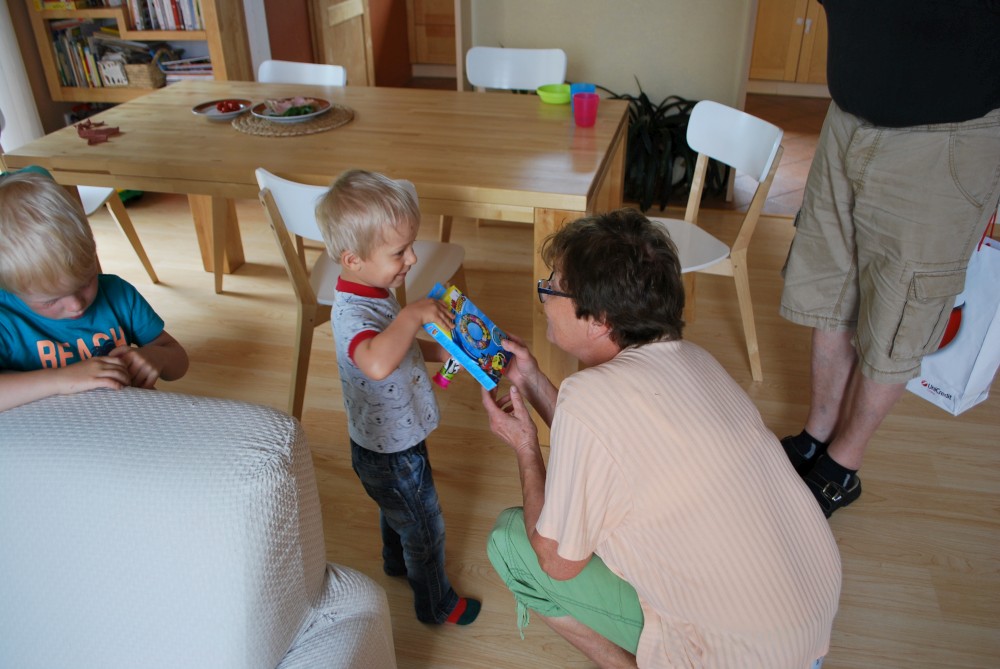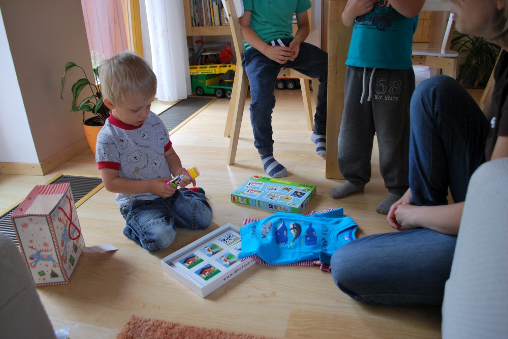 Martínek má dneska třetí narozeniny. Předáváme mu dárečky. Oslava bude v neděli.