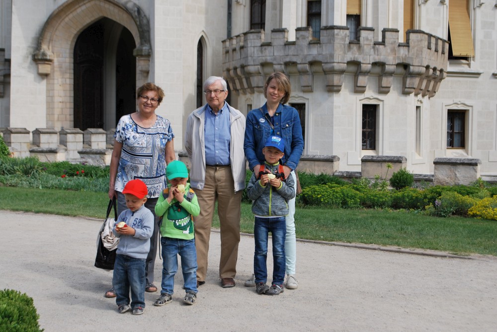 Dnes vyrážíme na zámek Hluboká. Jedeme v sedmi, bereme i dědu s babičkou. Máme zamluvenu prohlídku zámku. Asi hodinku chodíme s průvodkyní po reprezentačních prostorách zámku. Pak se jdeme projít po zámecké zahradě. Martin s rodinkou jsou nedaleko v místním sportovně rekreačním areálů. Jedeme za nimi. Dáváme si kávu a langoše, kluci si chvíli hrají v dřevěném hradu. Pak jedeme domů.