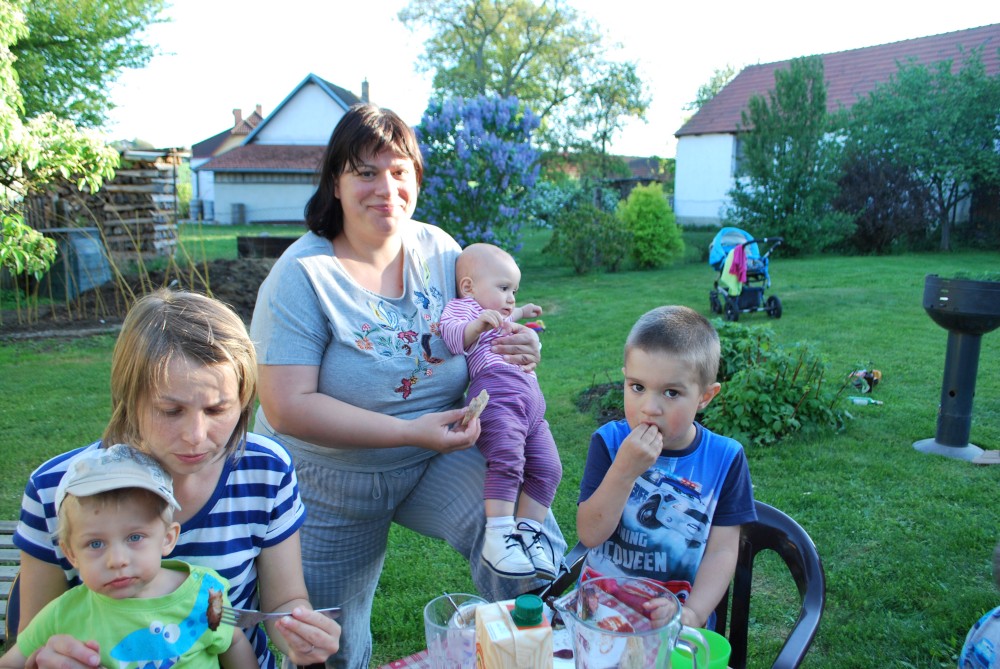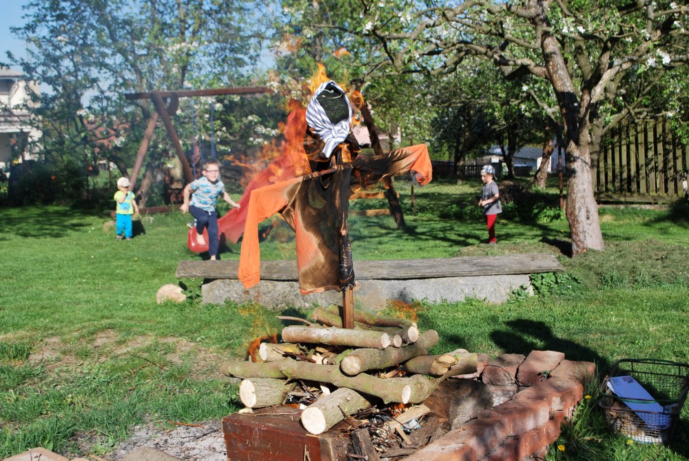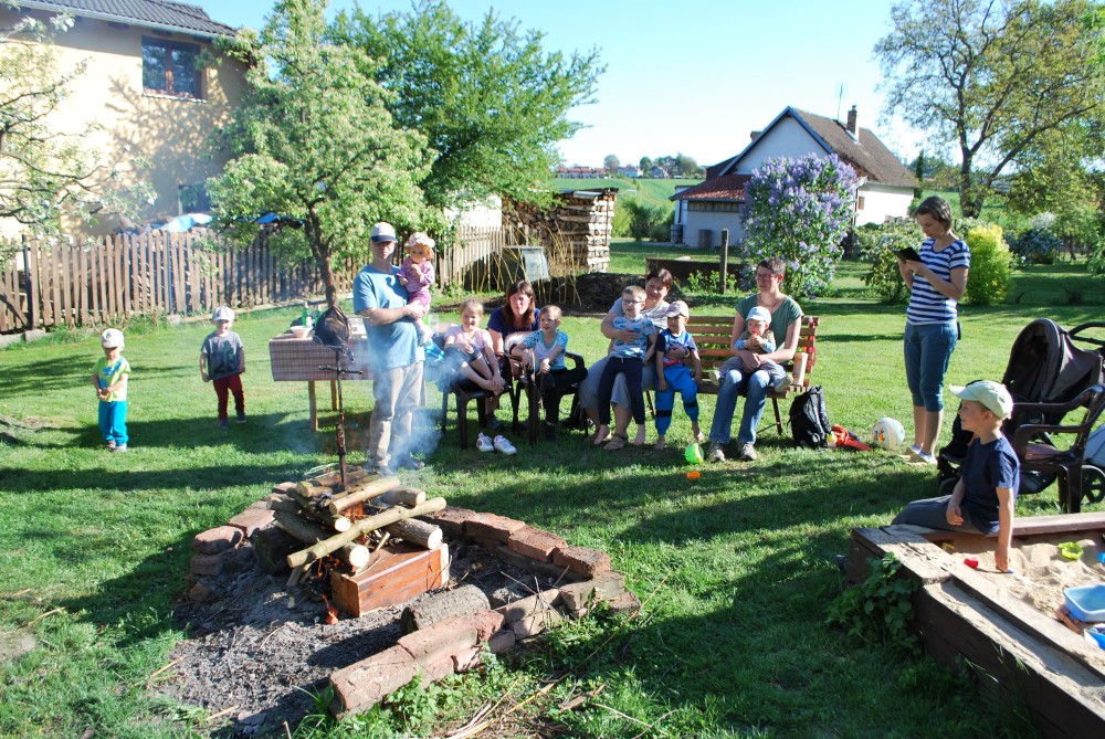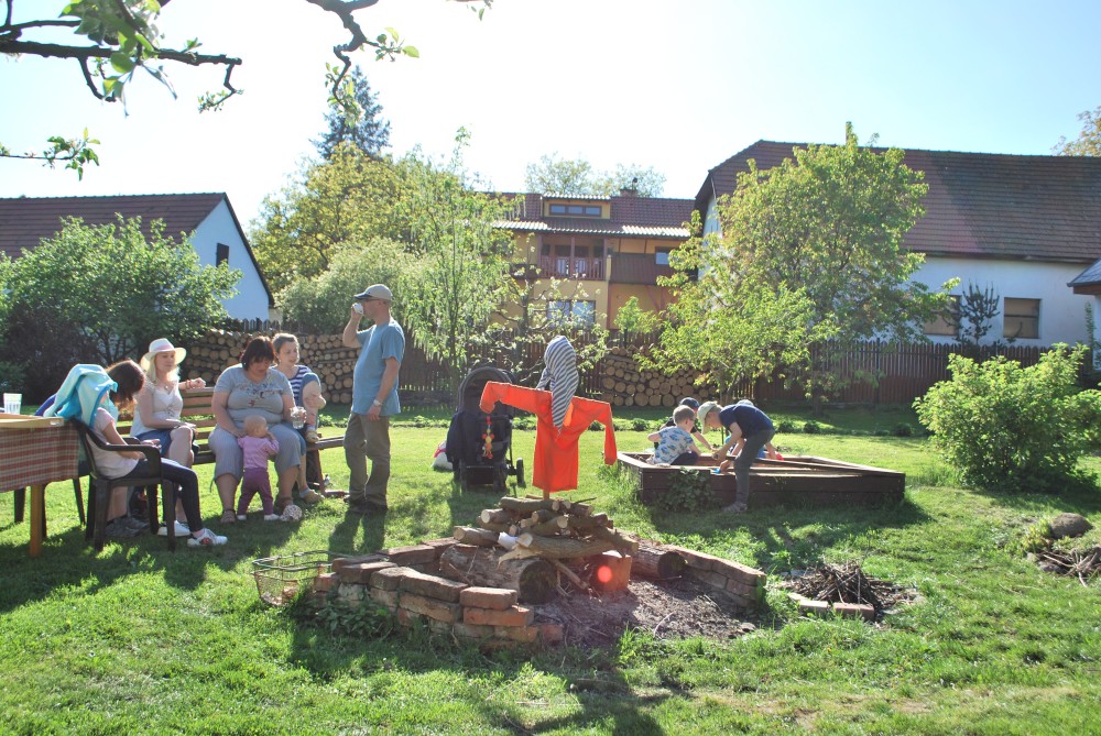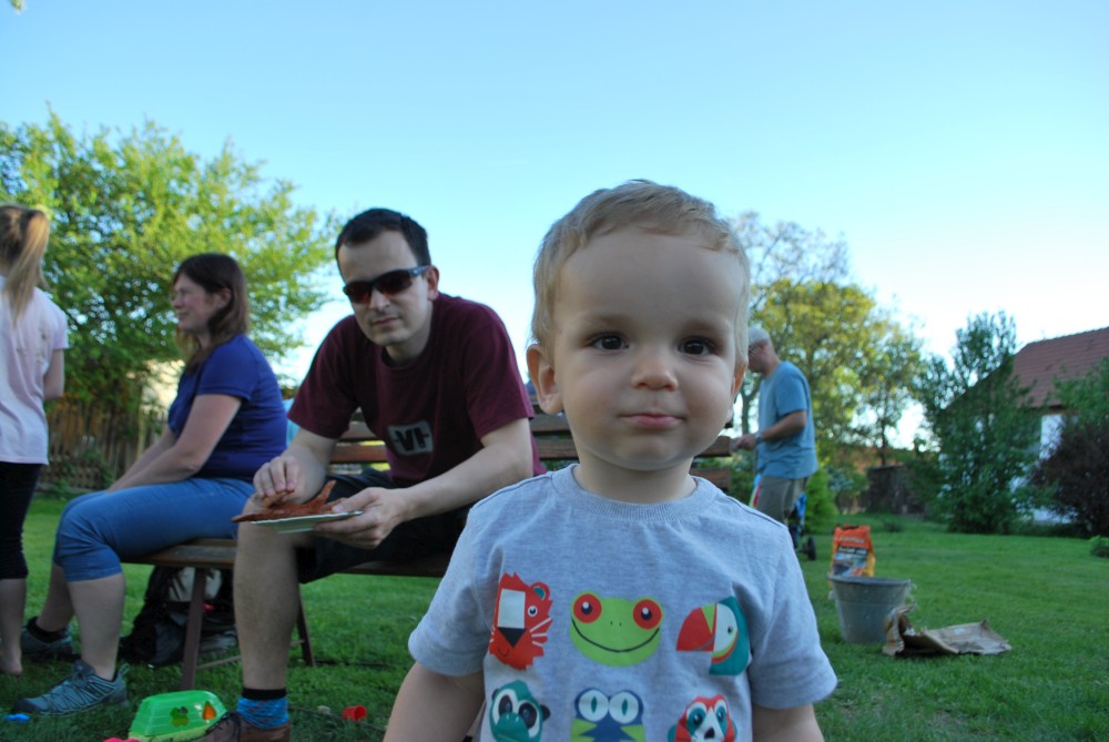 Dnes děláme oheň na Horkách. Udělali jsme i čarodějnici. Opékáme buřty, na grilu děláme maso. Dorazili Bartošovi, Danči sestra s dětma, Kultovka s dětma na chvilku Gábi. Dorazili také Wallovi. Poprvé vidíme malou Živu.