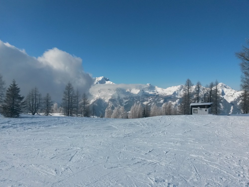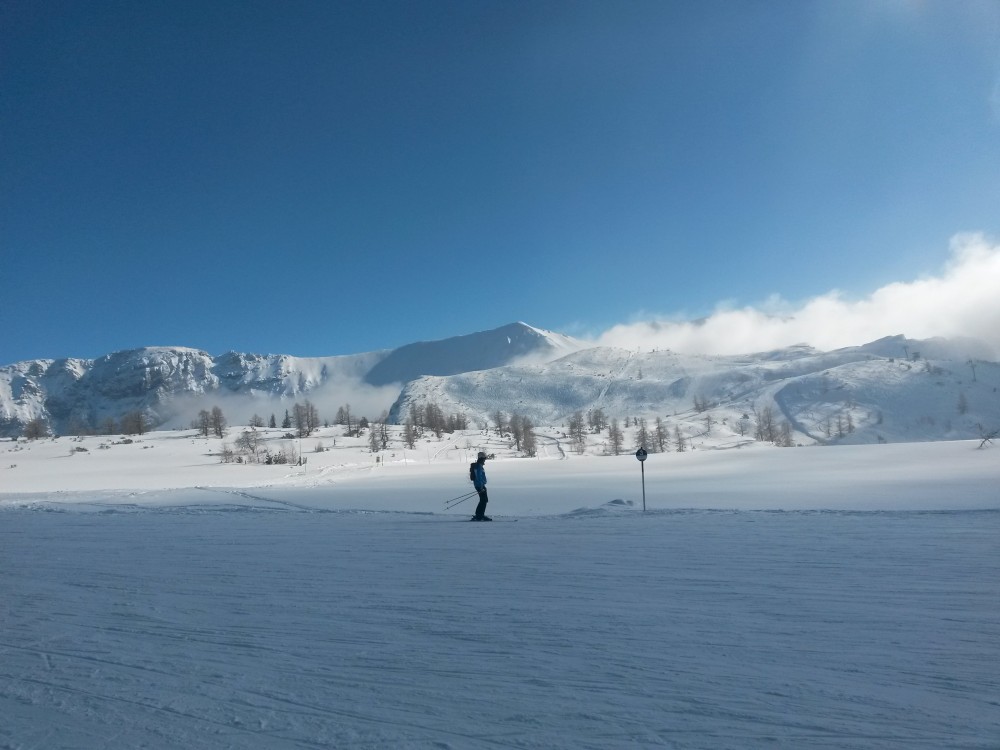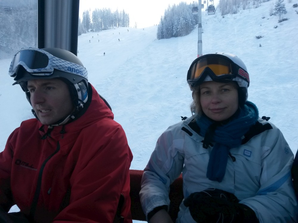 Babičky pohlídají děti a my jedeme na jeden den s Radkem a Terkou na lyže do Alp. Jedeme do Hinterstoderu. Má být celý den azuro, ale není. Celé dopoledne je zataženo. Ale odpoledne se mraky protrhají a sluníčko se objevuje. Je tu hodně lidí, na největších lanovkách nebo kabinkách jsou dlouhé fronty. Těm se vyhýbáme. Lyžování super. Kolem druhé dáváme pozdní oběd v horní chatě.