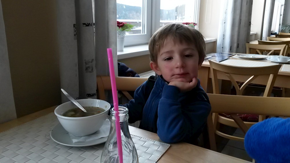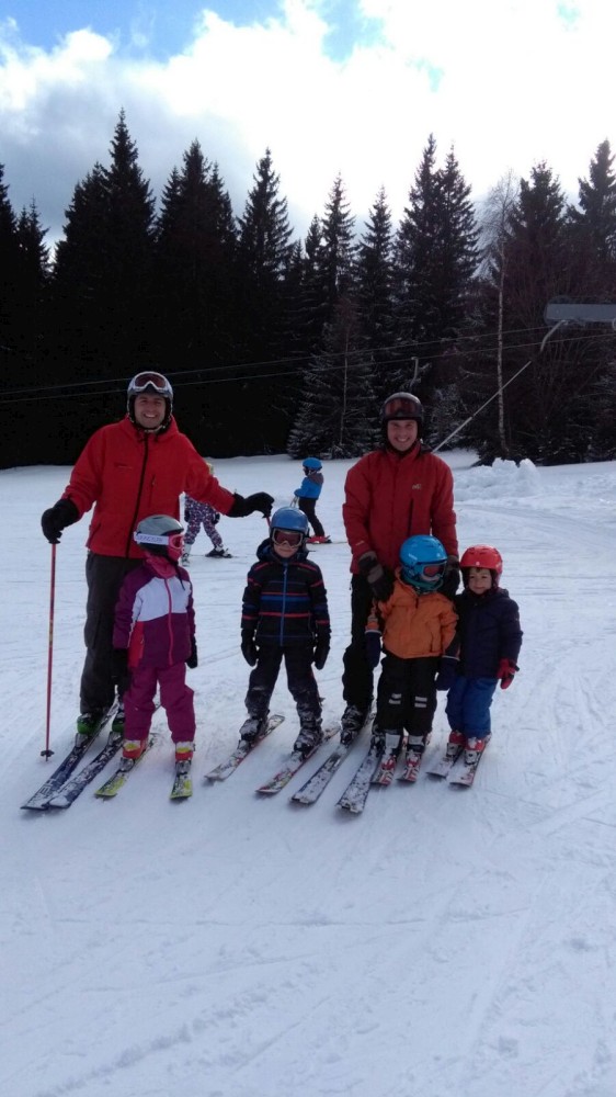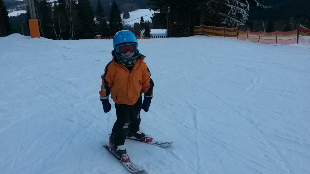 Jedeme na Zadov na jednodenní lyžovačku. Beru Víťu i Jiříka. Jana zůstává s Martínkem doma. Víťa má nové, delší lyže, ale zvládá to dobře. To je dobře, protože se potřebuji plně věnovat Jiříkovi, který je na lyžích poprvé. Jiřík se nejdříve brání, lyžovat se mu moc nechce, ale postupně ho to začíná bavit. Dopoledne se k nám připojuje Radek, Terka, Tonička a Fanoušek. Víťa jezdí s Radkem a Toničkou. Na oběd jdeme do hotelu Churáňov. Po obědě v lyžování pokračujeme.
