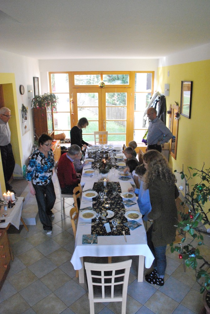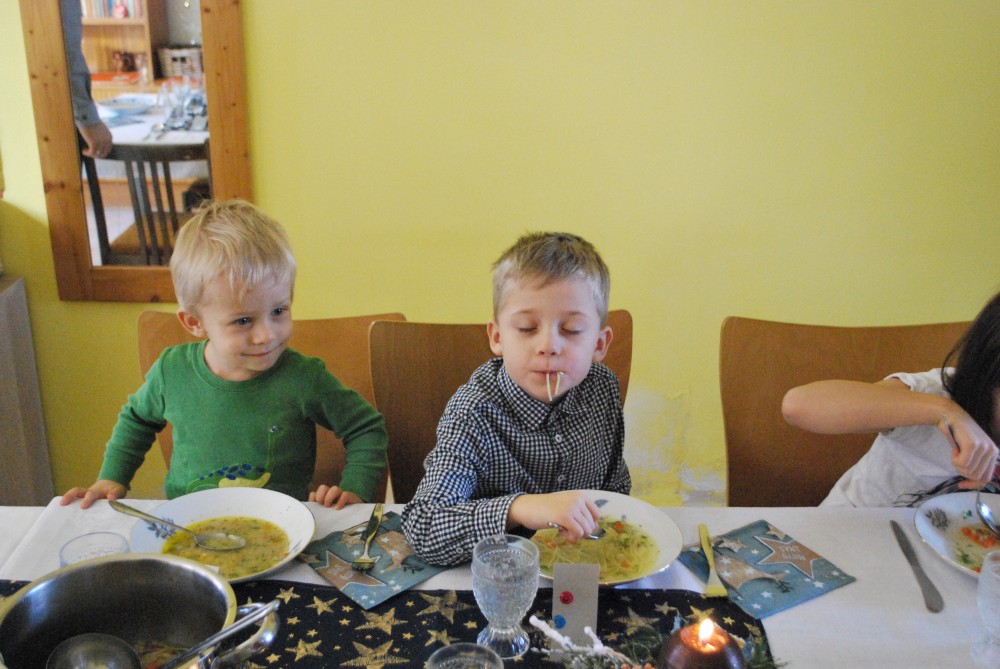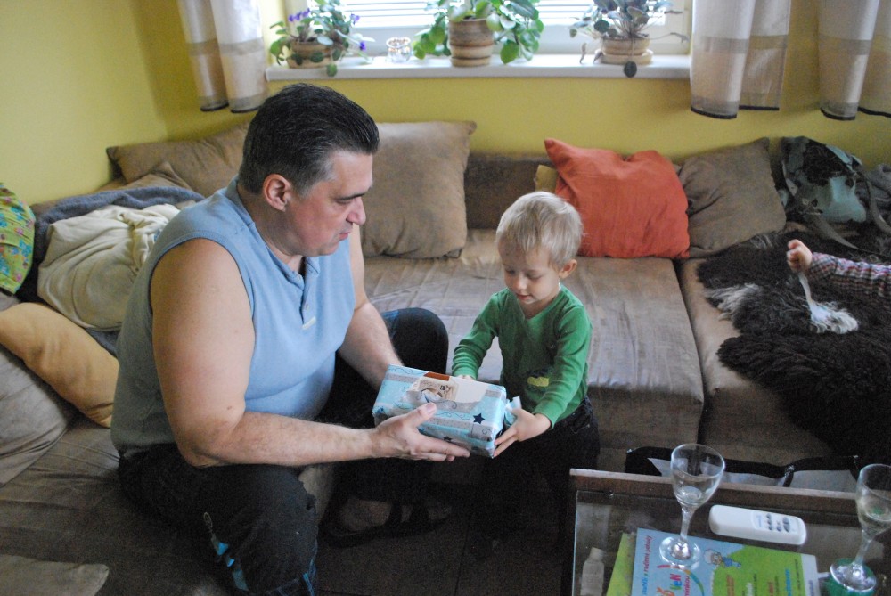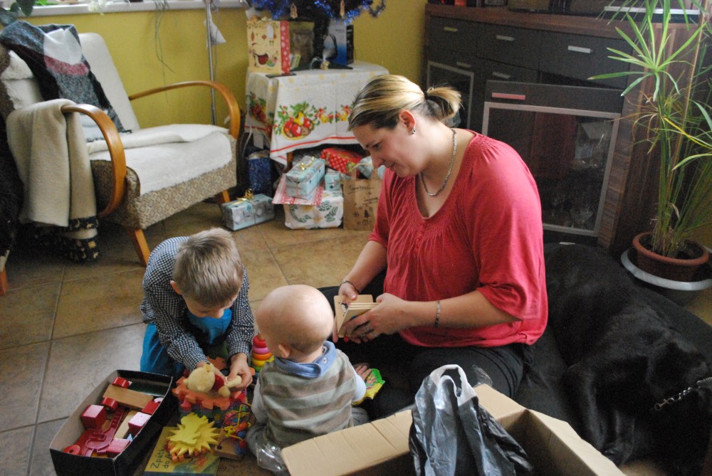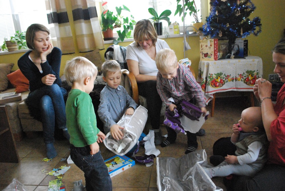 Dopoledne jedeme do Čekanic za babičkou Hankou. Přijela i Zuzka s Hynečkem. I tady jsou pod stromečkem nějaké dárečky. Víťa ukazuje svého nového teréňáka. Bahnitá zahrada je ideální zkušební terén. Na oběd jedeme na Horky.