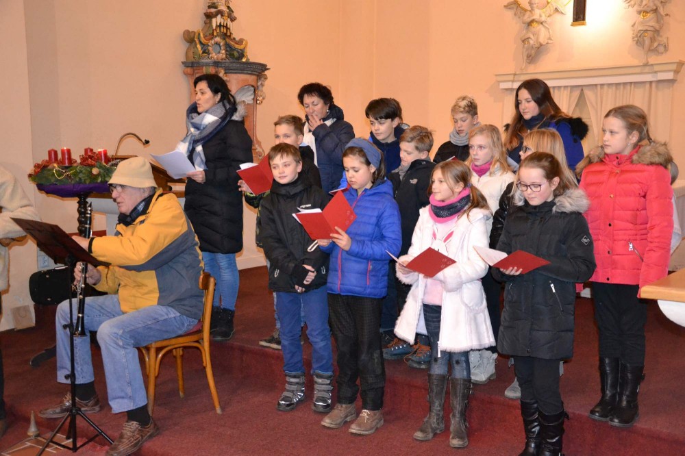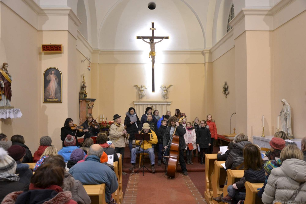 Jana jede s klukama na zpívání koled do kostela v Sezimově Ústí I. Na housle hraje babička Hanka.