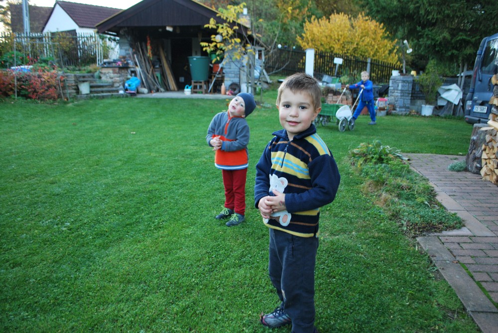 Po nedělním obědě vyrážíme do Biliny na setkání u Kultovky. Kultovka má narozeniny a pořádá tradiční malou oslavu. Kultovka je doma sama s Honzíkem a malým Vávrou, Pavel je na fotbale v Praze. Přijeli i Ondra se Šoch s jejich Ráďou a malou Maruškou a také Gábi. Gábi nám povídá o své cestě po Uzbekistánu. Pavla nám dává tradiční pohoštění - pečená kuřecí křidýlka. Děti si hrají venku na zahradě, jezdí na kole a na traktoru kolem domu, stříkají po sobě z vodních pistolek. Navečer jedeme domu. Bylo to příjemné odpoledne.