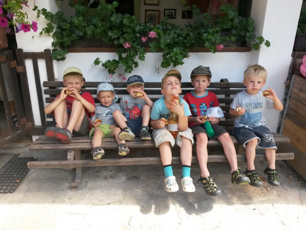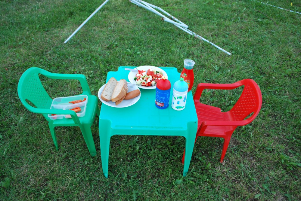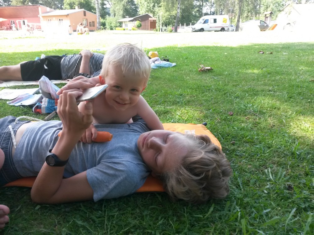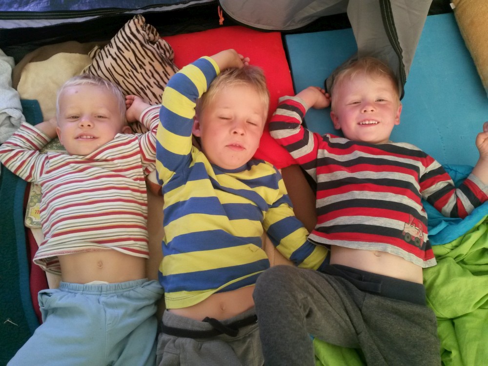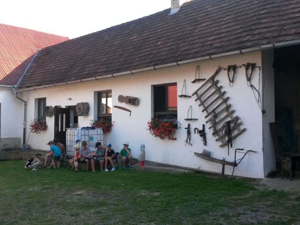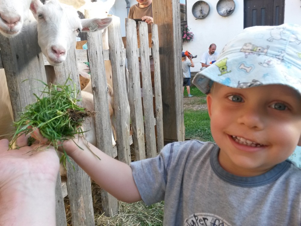 Opět jedeme na kozí farmu do Bílska. Poprvé beru s sebou všechny tři kluky. Koupili jsme si nový velký stan. Do malého už bychom se nevešli. Jedeme v pátek ráno, stejně jako Pavel a Kryštůfek, který čekal na konec fotbalového soustředění. Stavíme stan a připravujeme pro všechny dovezený oběd. Máme bramborový guláš. Je celkem horko, takže relaxujeme ve stínu, občas dáváme nějakou střílečku s nerfkama, zkoušíme autíčka na dálková ovládání, děti si hrají u koz, jdeme na nanuka, navečer máme tradičně oheň a buřty. Sledujeme červánky.