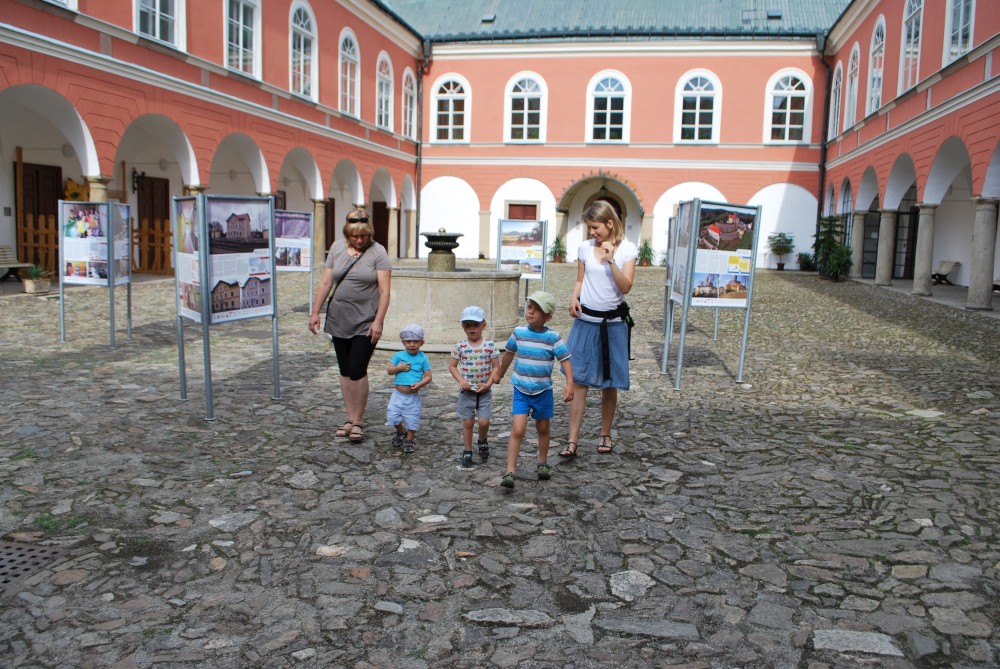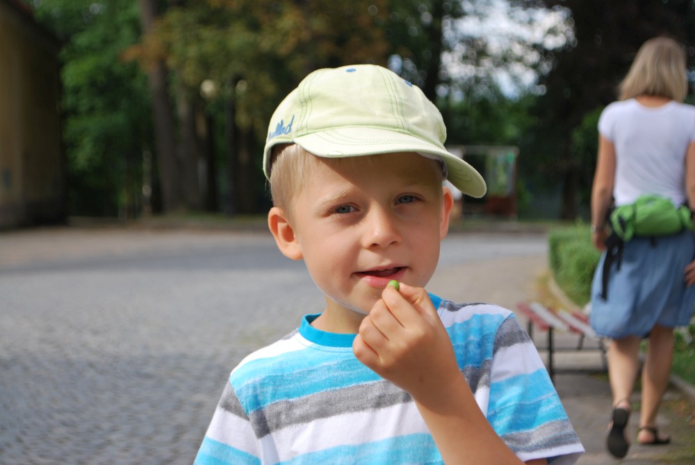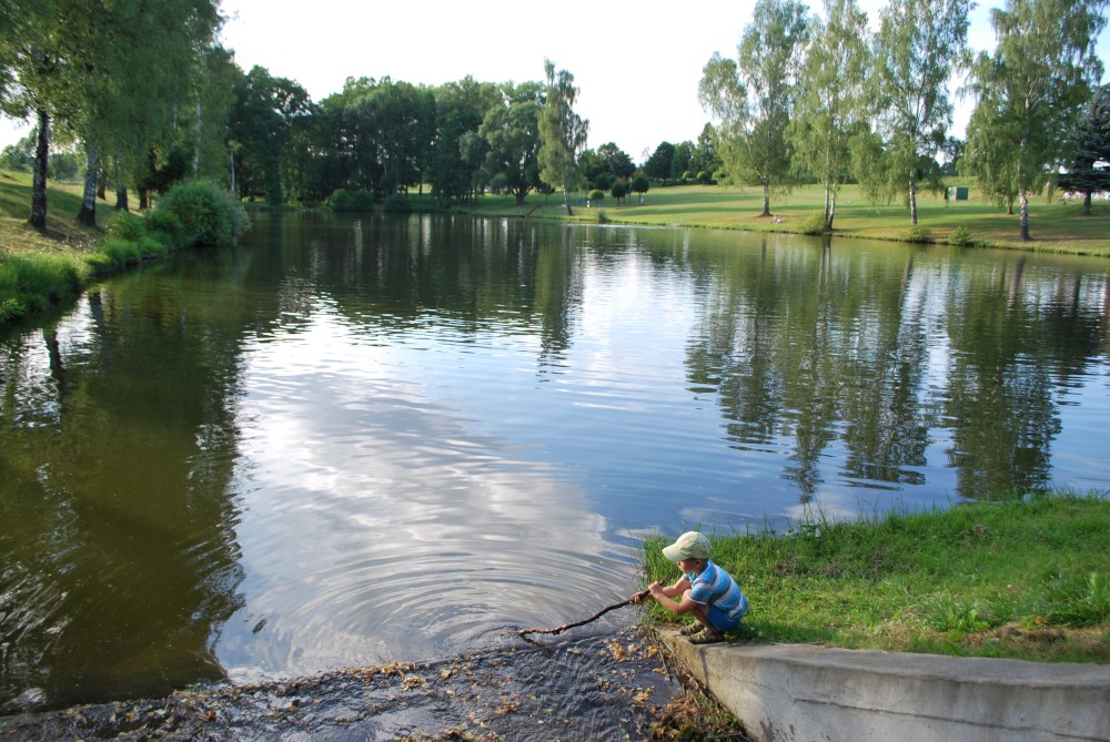 Jedeme na odpolední nedělní výlet na zámek do Kamenice nad Lipou. Bereme s sebou babičku Hanku. Cestou se zastavujeme v Chýnově u prababičky Vlasty. V Kamenici jsme až kolem páté. Zjišťujeme, že na zámku je výstava hraček, ale právě zavírají. Jdeme se tedy projít do zámecké zahrady. Tam je asi 900 let stará lípa, po které se jmenuje Kamenice na Lipou. Pak si jdeme sednout do zámecké kavárny. Sice už také zavírají, ale kávu a džusíky nám ještě dají. Jdeme se ještě projít kolem zámeckého rybníka. U místní přírodní plovárny si kluci pohrají u hráze a pak se vracíme zpět k autu. Je to pěkné městečko ta Kamenice.